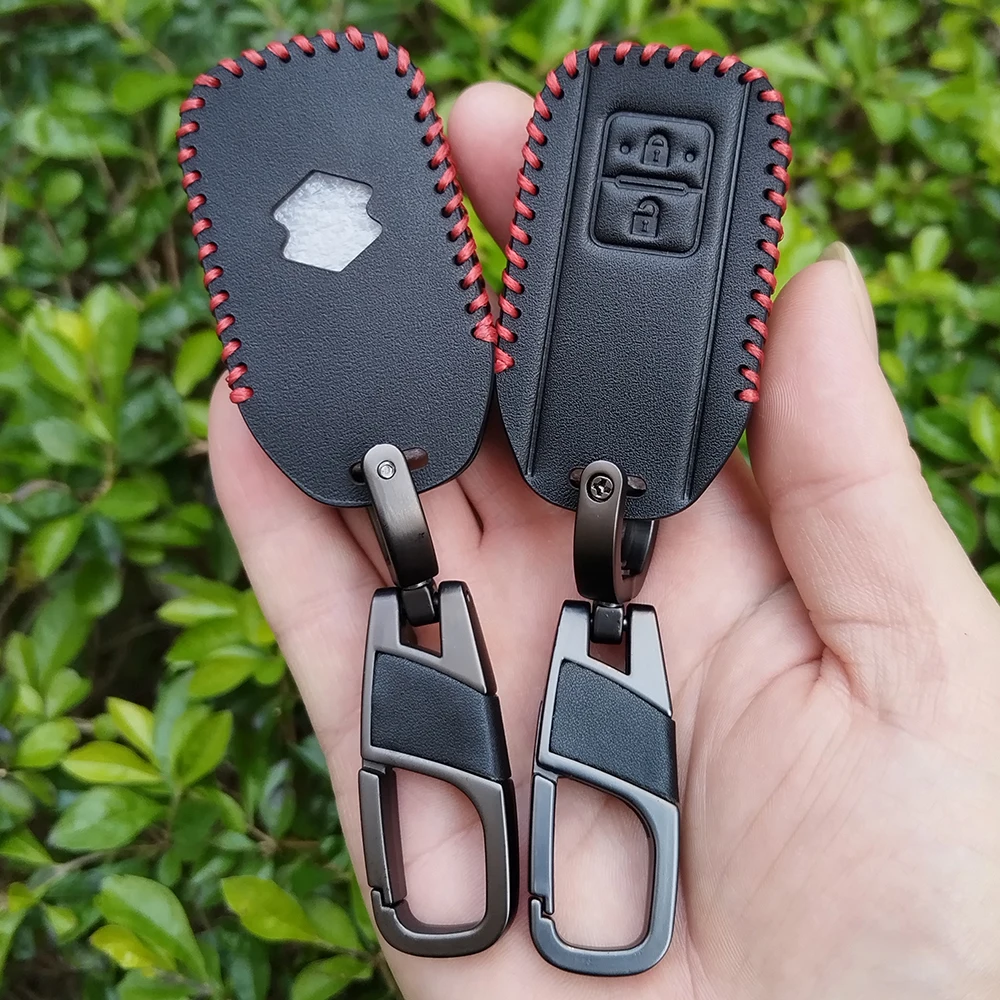 - > Capa de chave de couro para suzuki swift 2017 2018 keyless fob escudo pele chaveiro titular protetor acessórios escudo