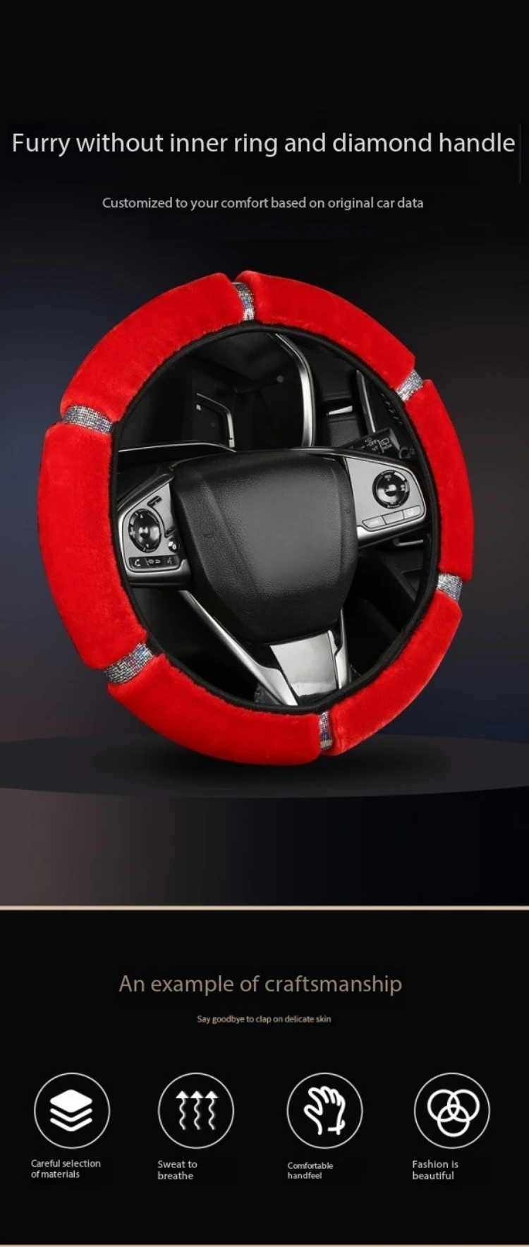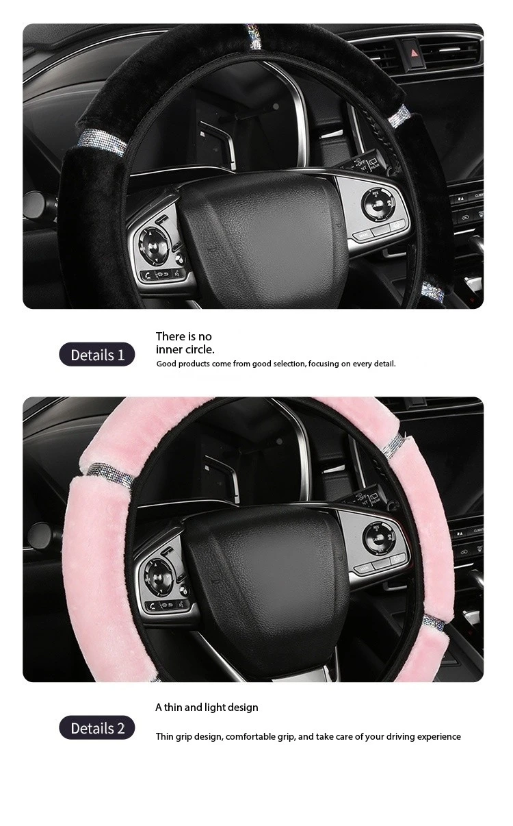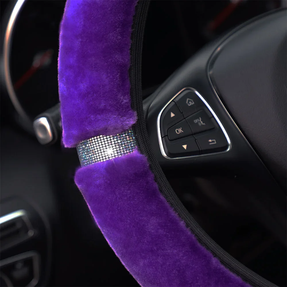 - > Capa de volante de carro de pelúcia macia strass acessórios interiores de inverno 37-38cm capa de direção estilo de carro para mulher
