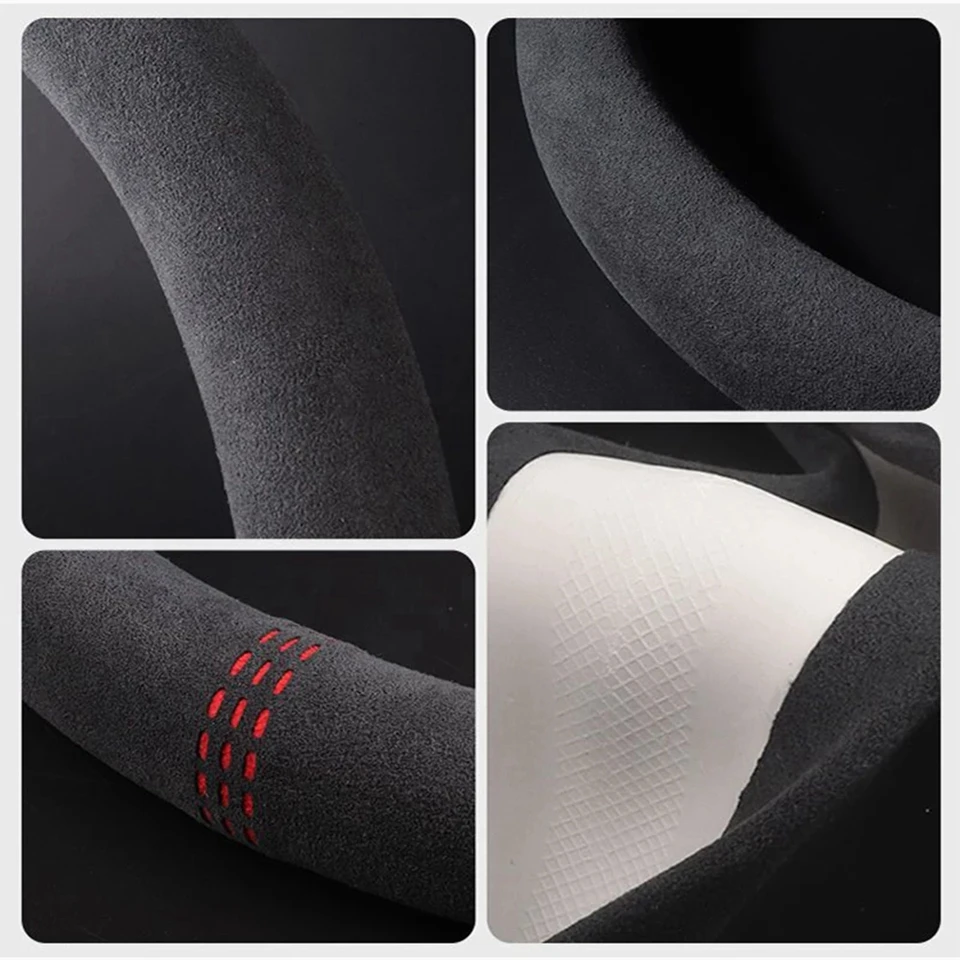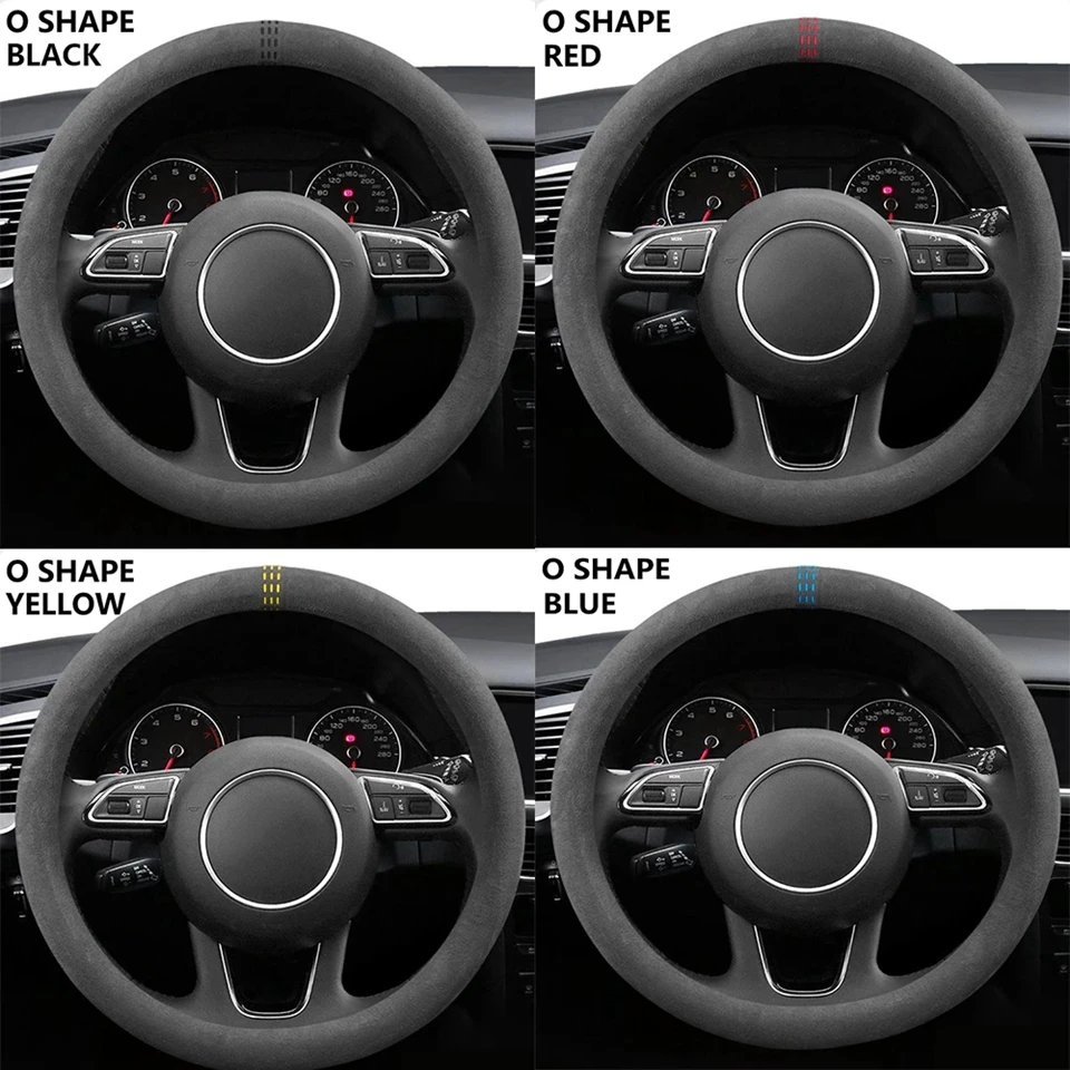 - > Capa para volante de carro, couro de vaca, camurça, envoltório universal, 37-38cm, respirável, acessórios para carro