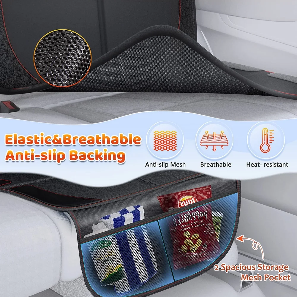【Material que não desbota e 2 ótimos bolsos de armazenamento】Os pontos antiderrapantes traseiros do protetor do assento do carro adotam material que não desbota, que é resistente ao calor e seguro, não se preocupe com o amado assento do carro ficar sujo.Com 2 bolsos de armazenamento para guardar brinquedos, lanches e lenços umedecidos, torne a viagem da sua família mais agradável.