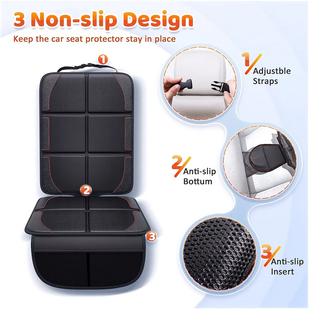 【3 designs antiderrapantes para garantir que a capa do assento não deslize】As alças ajustáveis podem esticar até 10 polegadas, o que é resistente e pode amarrar firmemente a capa ao encosto de cabeça.A inserção antiderrapante prende-se na costura do assento do carro para garantir que a almofada do assento possa ser firmemente fixada no assento do carro.A parte inferior com pontos antiderrapantes densos, que proporcionam melhor o assento de couro para manter ainda mais o protetor do assento no lugar.