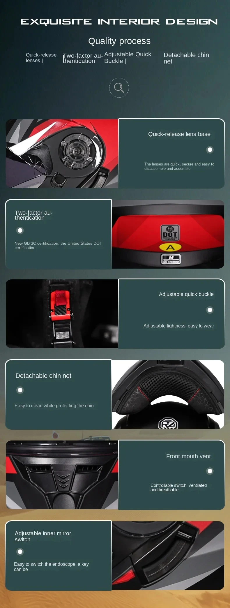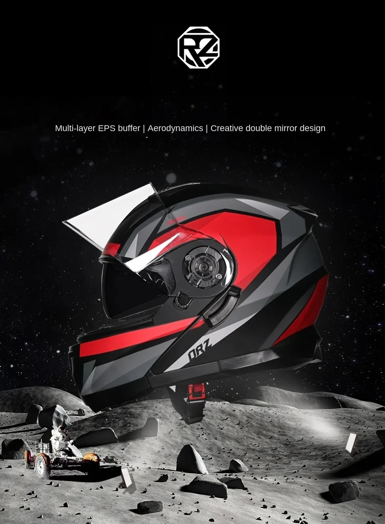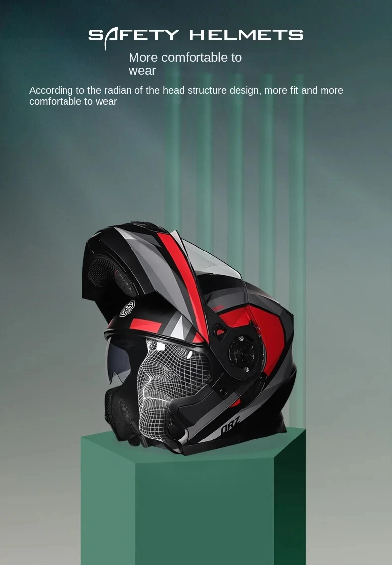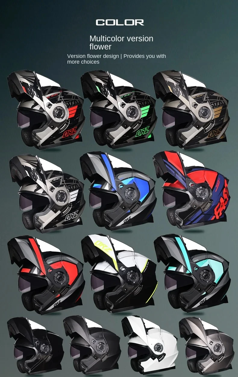 Capacete completo da cara da motocicleta, ORZ-162, modular, longa distância, fora de estrada, pára-sol incorporado, cara cheia