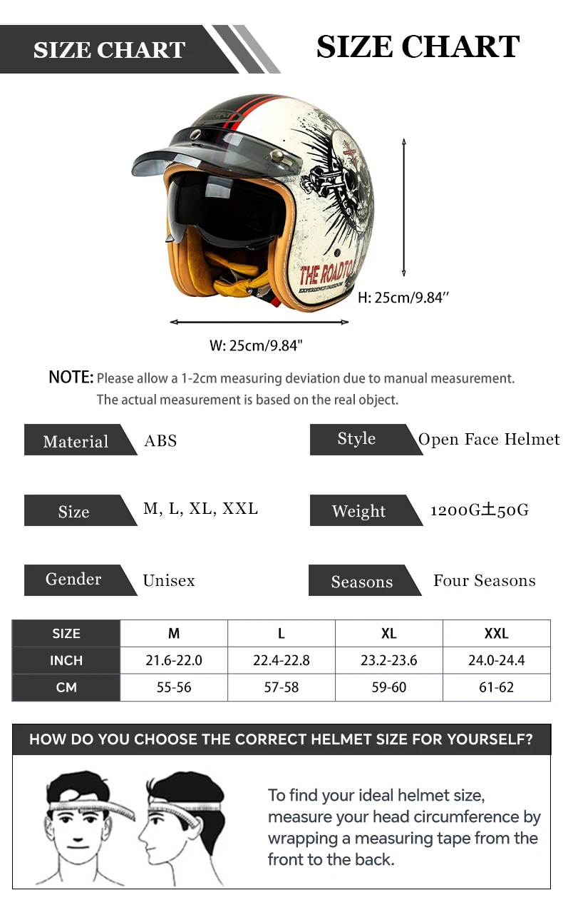 ▶ A medição do tamanho do capacete é uma medição manual, pode haver um erro de 1 ~ 2 cm.