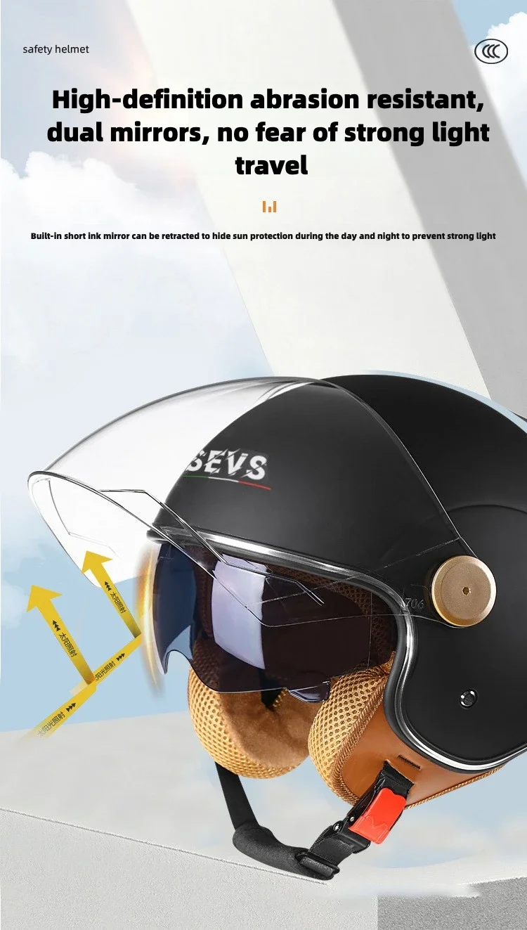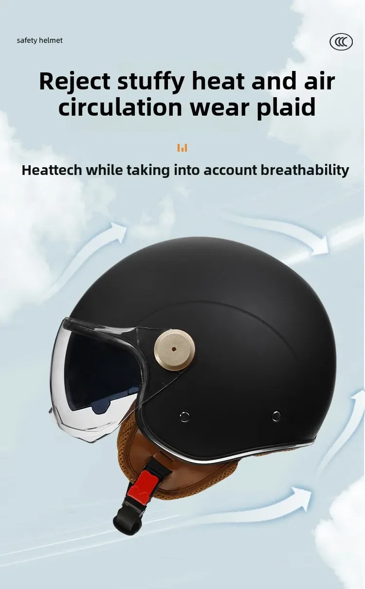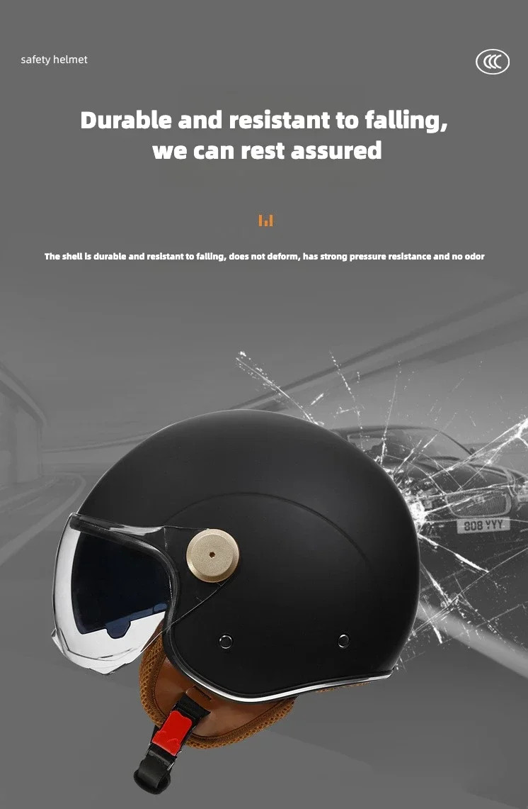 Capacete de motocicleta retrô com certificação 3C e DOT, meia face ABS, viseira dupla, protetor solar oculto, removível, orelhas de gato fofas