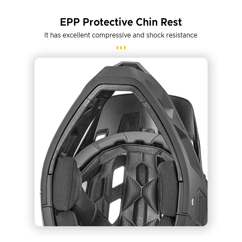 Equipado com suporte para queixo em EPP, este capacete para mountain bike oferece maior conservação.