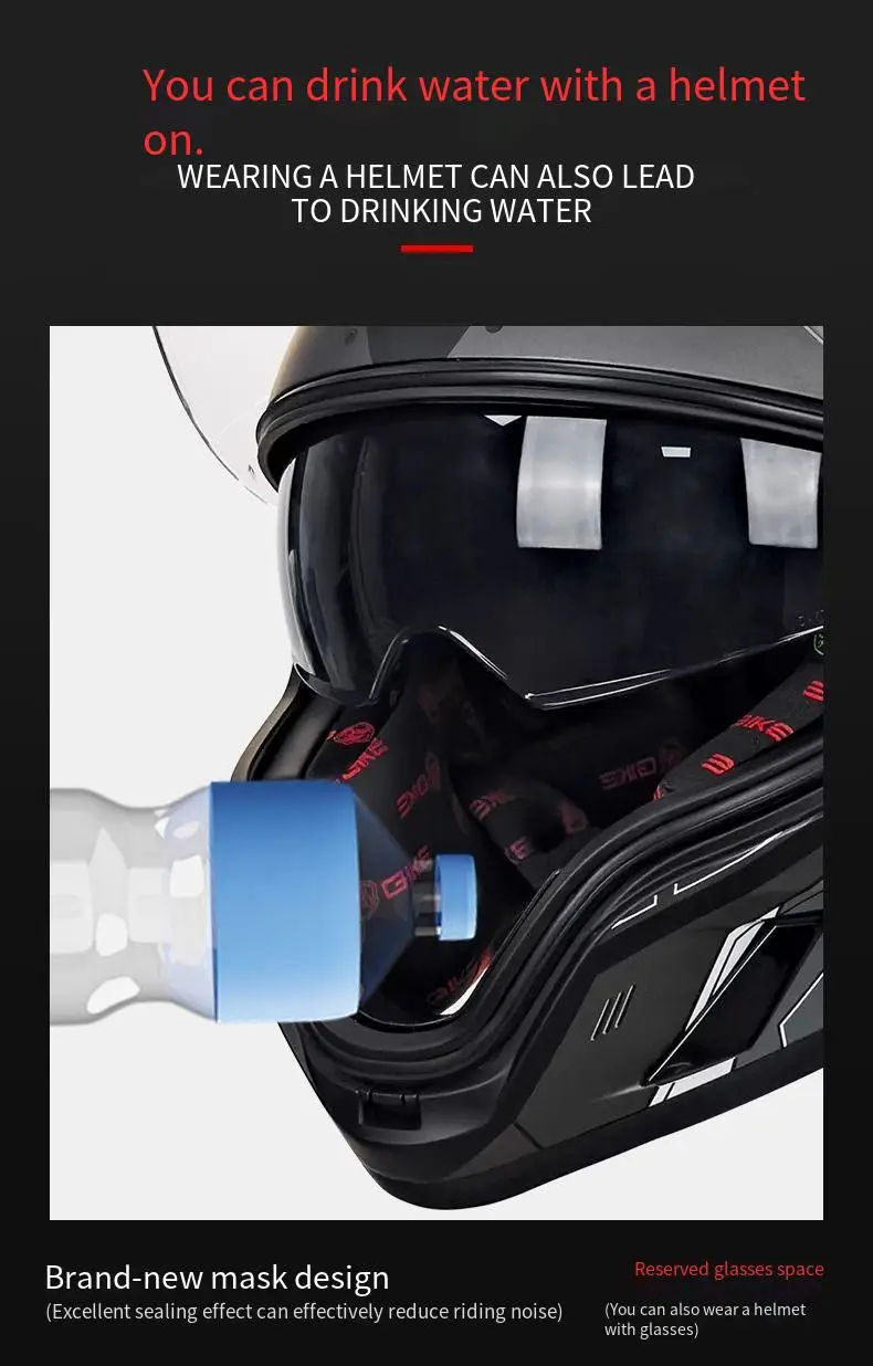Capacete para beber, capacete de motocicleta, capacete descoberto, espelhos duplos masculinos e femininos, capacete de inverno para todos os climas, 3C e DOT do