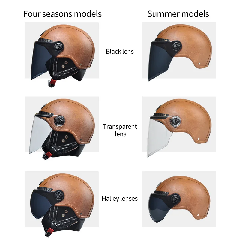 Capacetes AD Retro com viseira Harley, capacete de couro masculino, moto elétrica vintage, boné de segurança protegido para motor