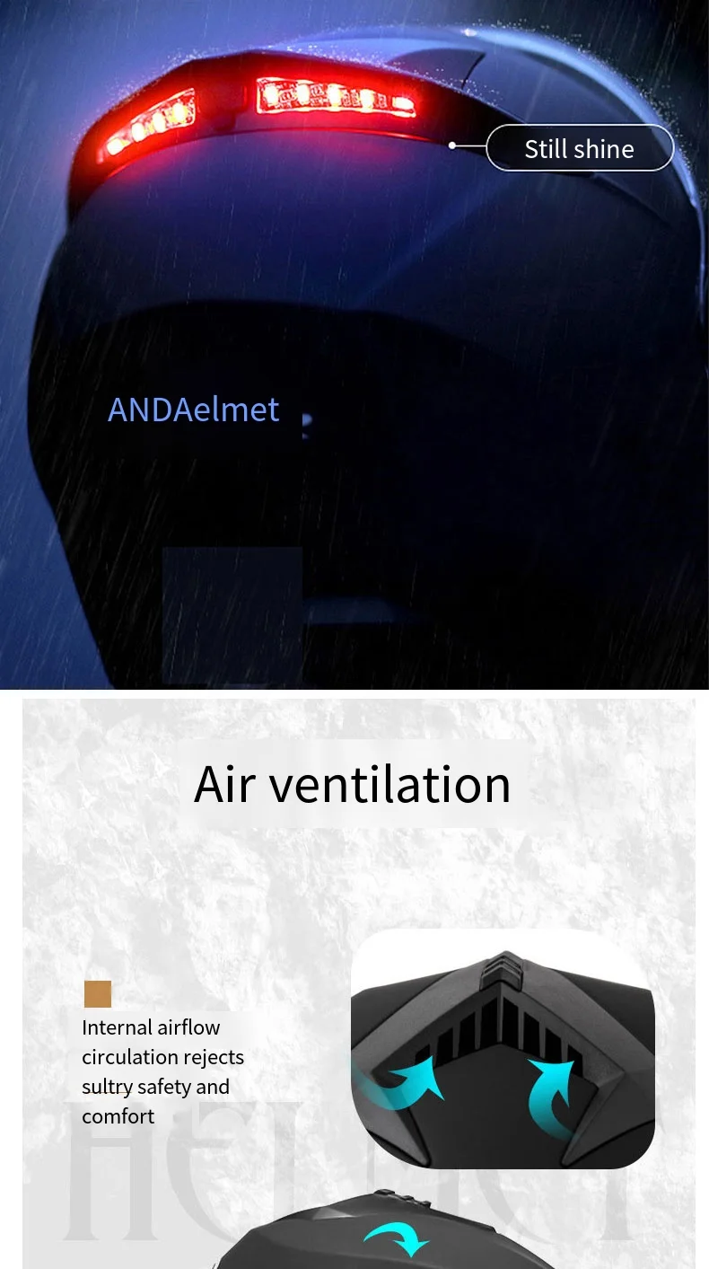 Capacetes de motocicleta com luzes led para homens e mulheres, capacete ciclomotor, scooter elétrico com viseira dupla, luz de bicicleta recarregável