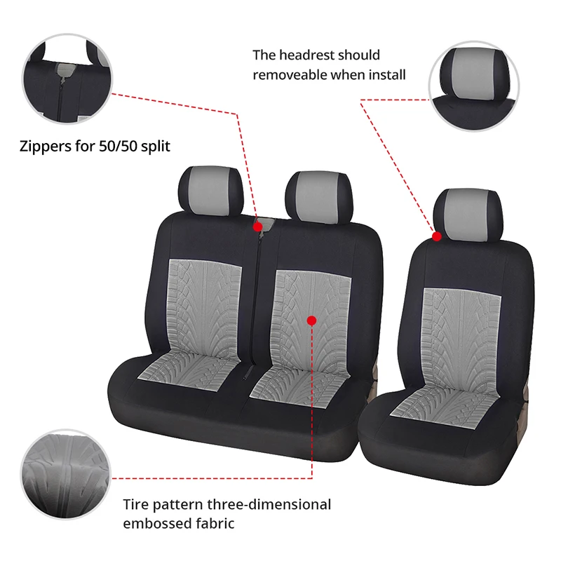 1.Capa de assento estilo impressão de pneus, design de material de fibra de poliéster: fácil de limpar