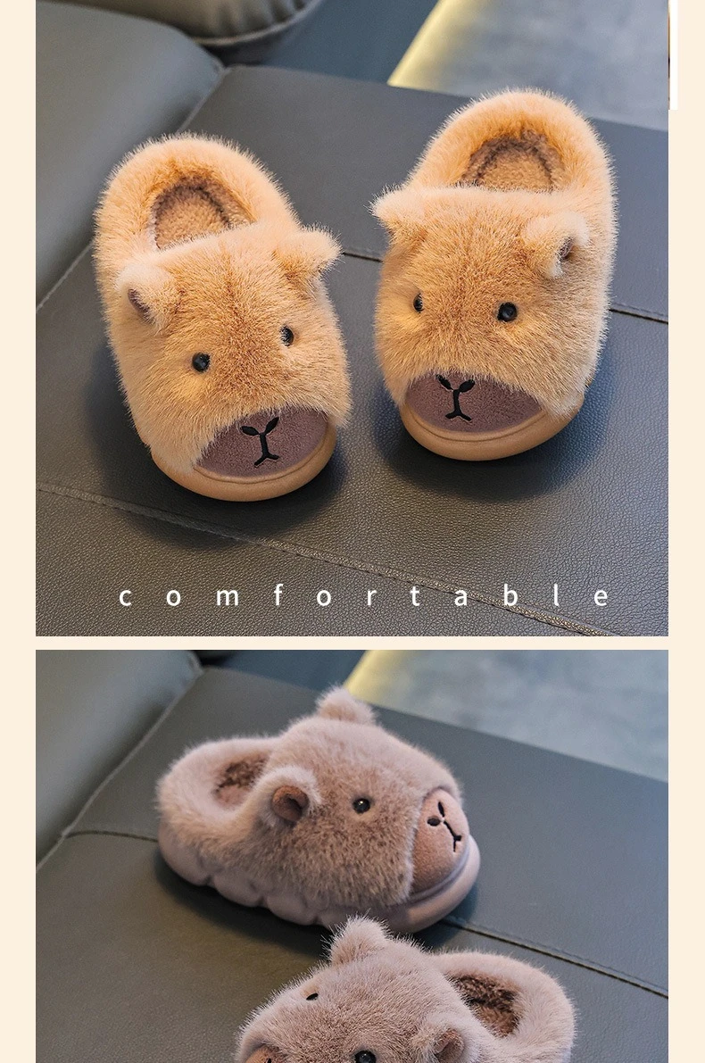 - > Capivara crianças chinelos 2025 inverno novo bonito fofo algodão sapatos de chão mulher quente interior dos desenhos animados piso de pelúcia casa chinelos