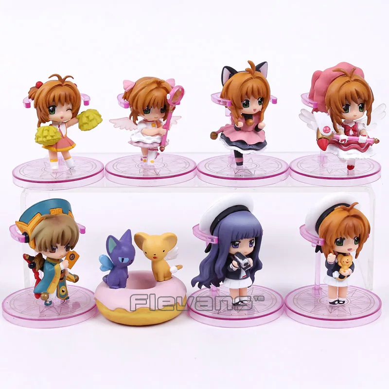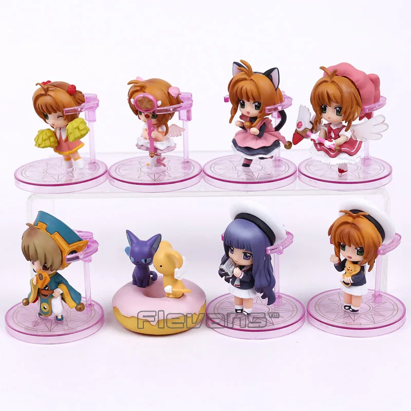 - > Card Captor Sakura Kinomoto Sakura Daidouji Tomoyo 8 pçs/set Li Syaoran Kero Brinquedos Figura Modelo Q Versão Bonecas Presente