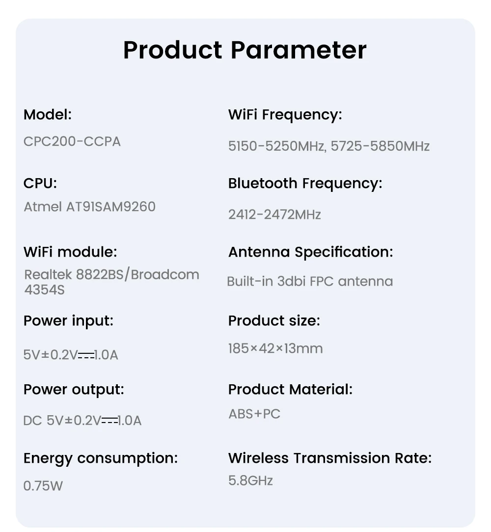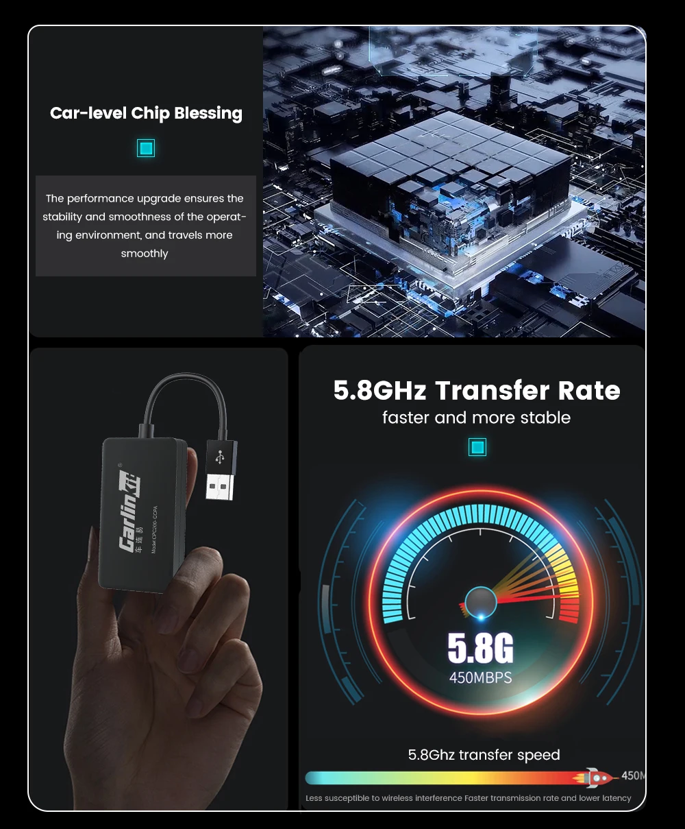 Com o novo modelo de dongle sem fio usb CCPA, você pode conectar seu telefone Apple iOS 10+ ao seu carro Android de reposição via wi-fi automaticamente, a velocidade de conexão é rápida, traz para você uma excelente experiência para desfrutar de streaming de música, waze, mapa do Google, videochamada, Assistente de voz Siri, qualidade de som original do carro, ligue dois aplicativos ao mesmo tempo, etc.