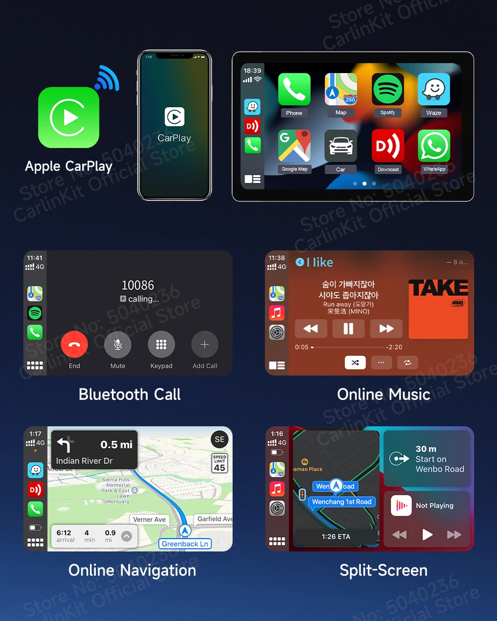 ✨Suporta CarPlay original e Android Auto original.Troca livre entre os dois modos.Quer o seu carro suporte CarPlay ou Android Auto, ele pode ser usado.Possui menos restrições no carro e maior adaptabilidade.