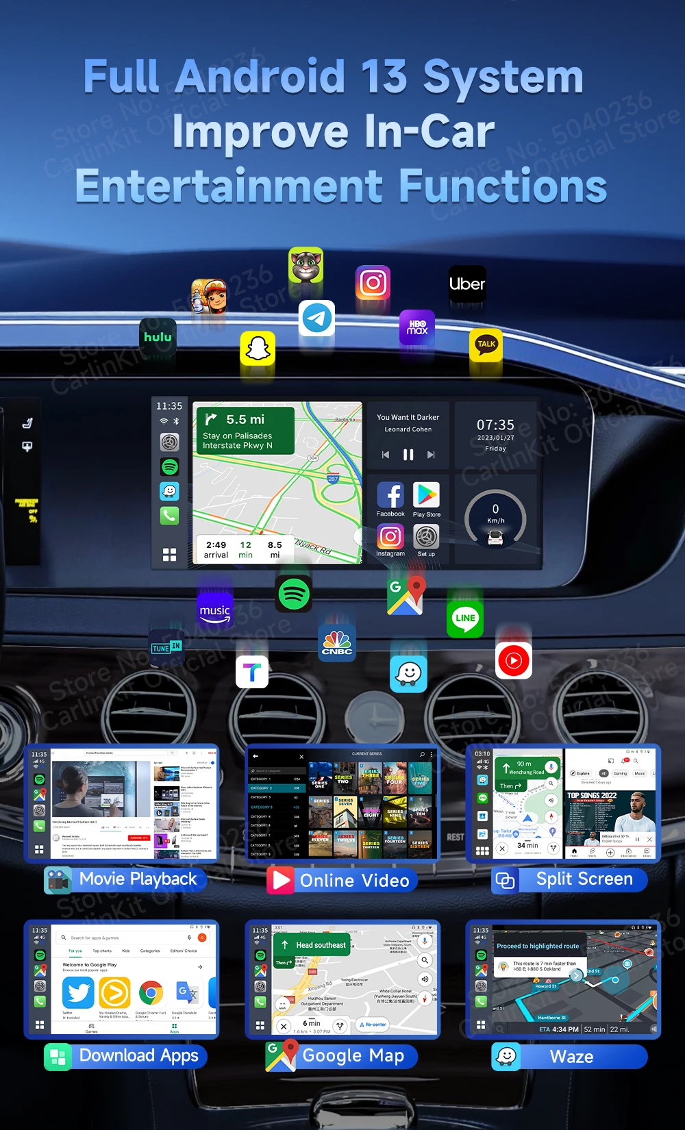 ✨O mais novo Android 13.0 sistema, suporte CarPlay sem fio, Android Auto sem fio, você pode escolher entre dois sistemas: Clique no ícone "Autokit" para acessar CarPlay sem fio ou Android Auto sem fio.suporte para atualização on-line FOTA, compatível com telefones iPhone e Android