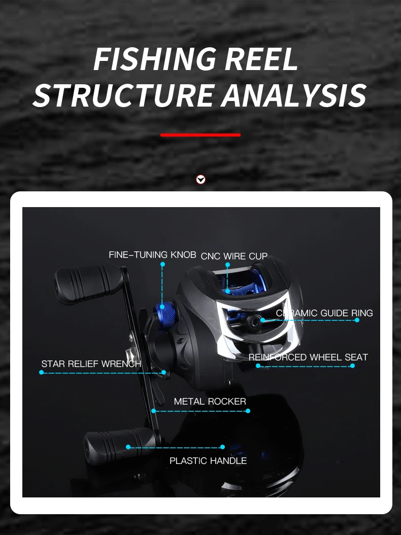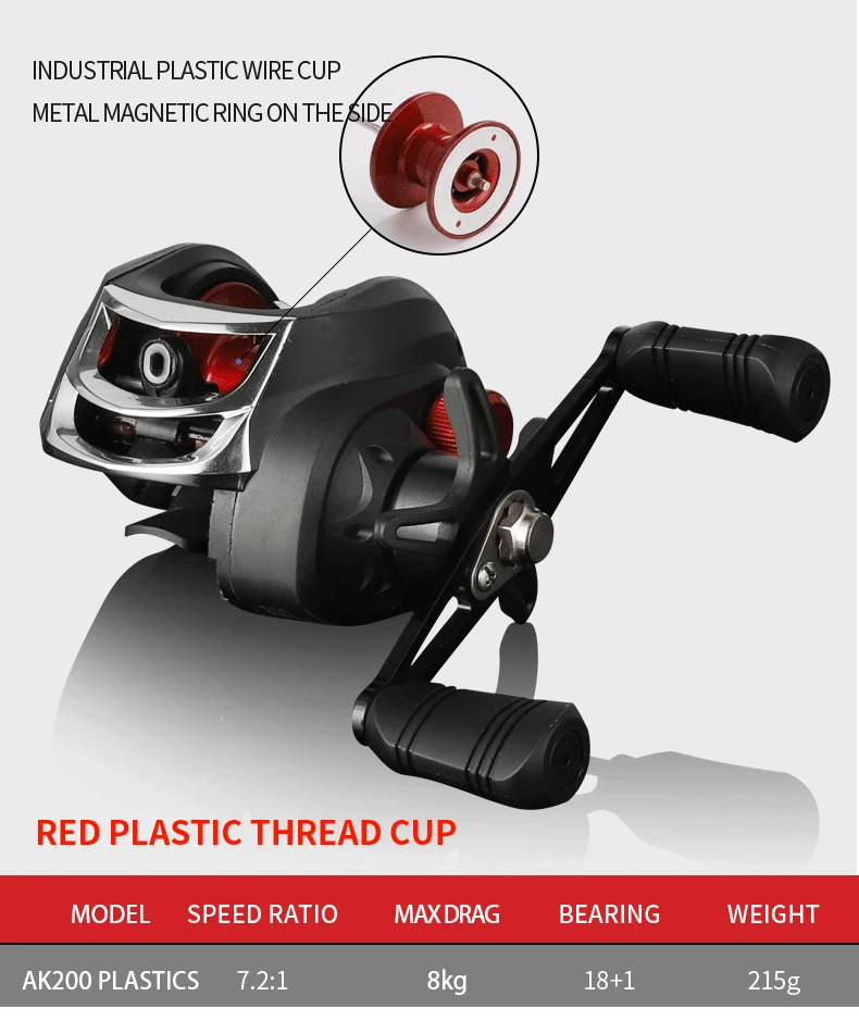 Carretel de arremesso BILLINGS série AK, relação de engrenagem 7.2:1 18 + 1BB, arrasto máximo de 18LB, carretel raso, para água salgada de água doce