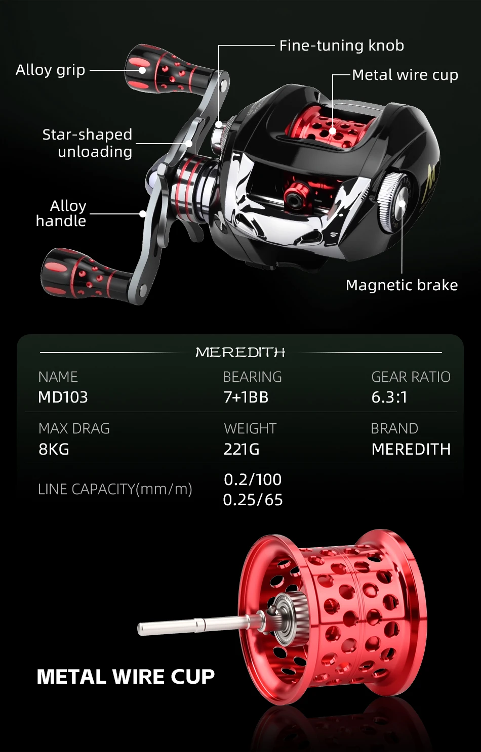Este carretel de arremesso MD apresenta uma estrutura de metal para durabilidade excepcional, resistência à corrosão e resistência ao impacto para ajudá-lo a batalar peixes difíceis em água doce e salgada.