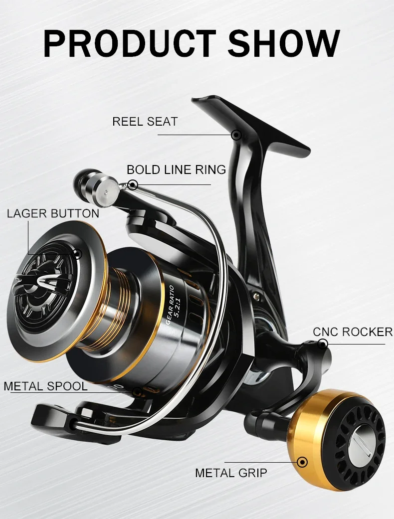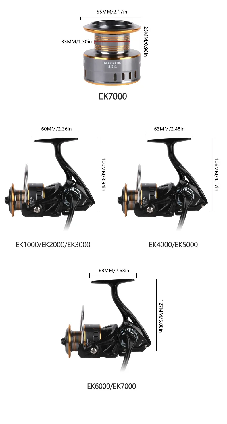 Carretel de pesca, carretilhas de pesca de água doce 13BB, carretel giratório de água salgada poderoso ultra suave, relação de engrenagem 5.2:1 carretel à prova d'água