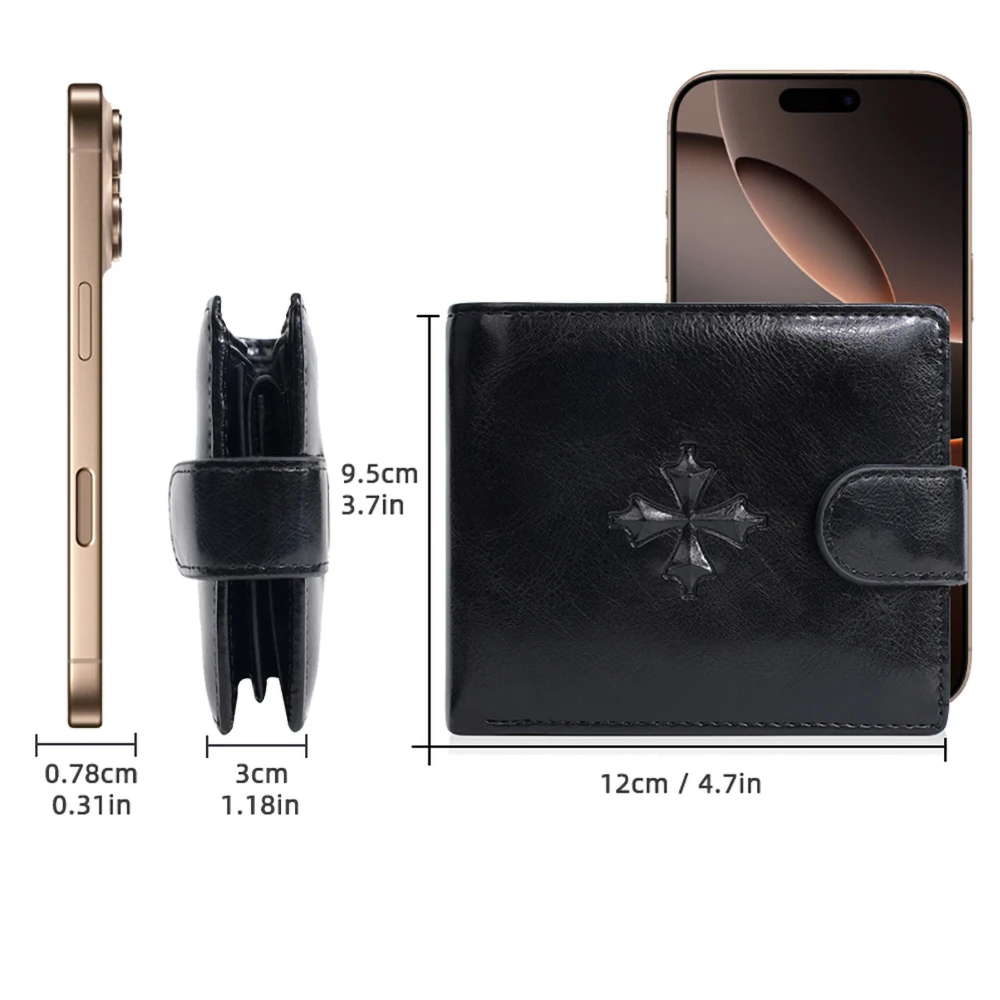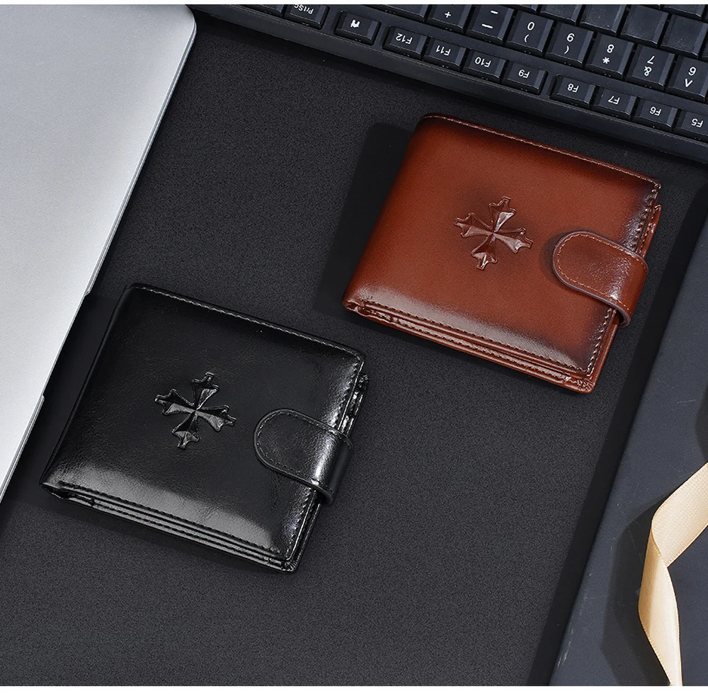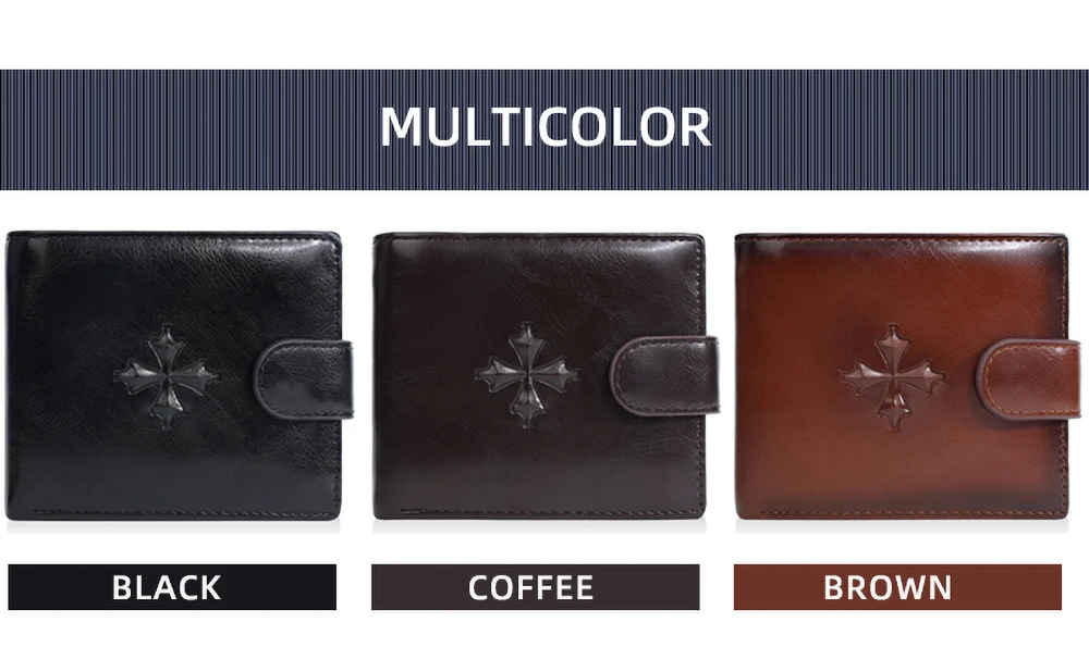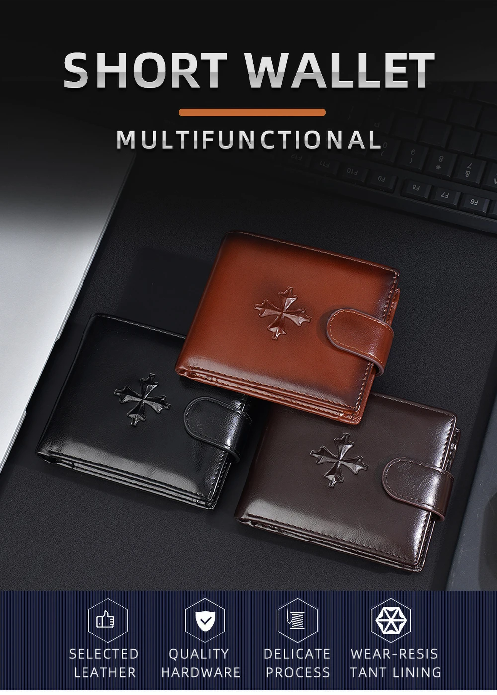 - > Carteira masculina de couro genuíno Baellery curta bifold, organizador de dinheiro de grande capacidade com vários slots para cartões, bloqueio RFID