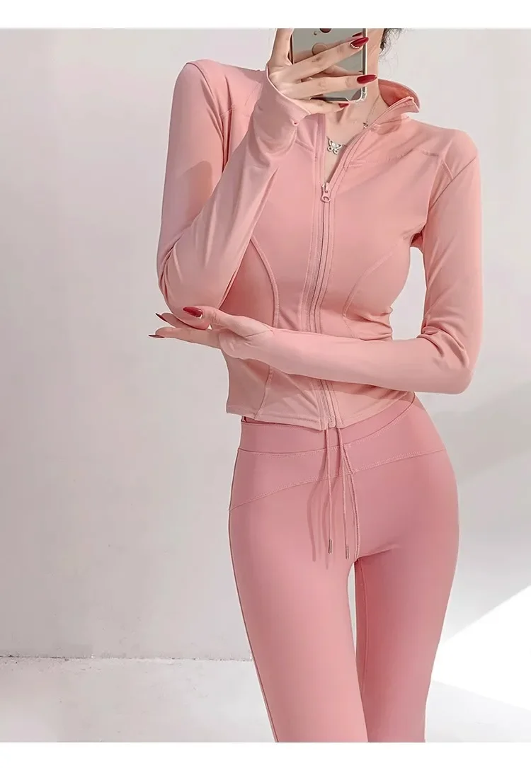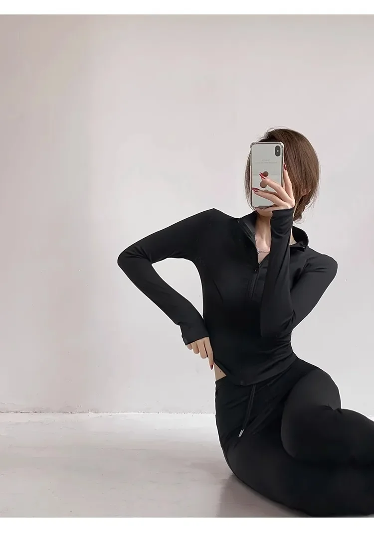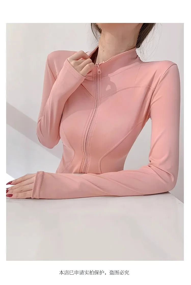 Casaco esportivo de secagem rápida para mulheres, tops apertados, manga comprida, zíper, jaqueta de ioga, corrida e fitness, proteção solar, S-3XL, 2024