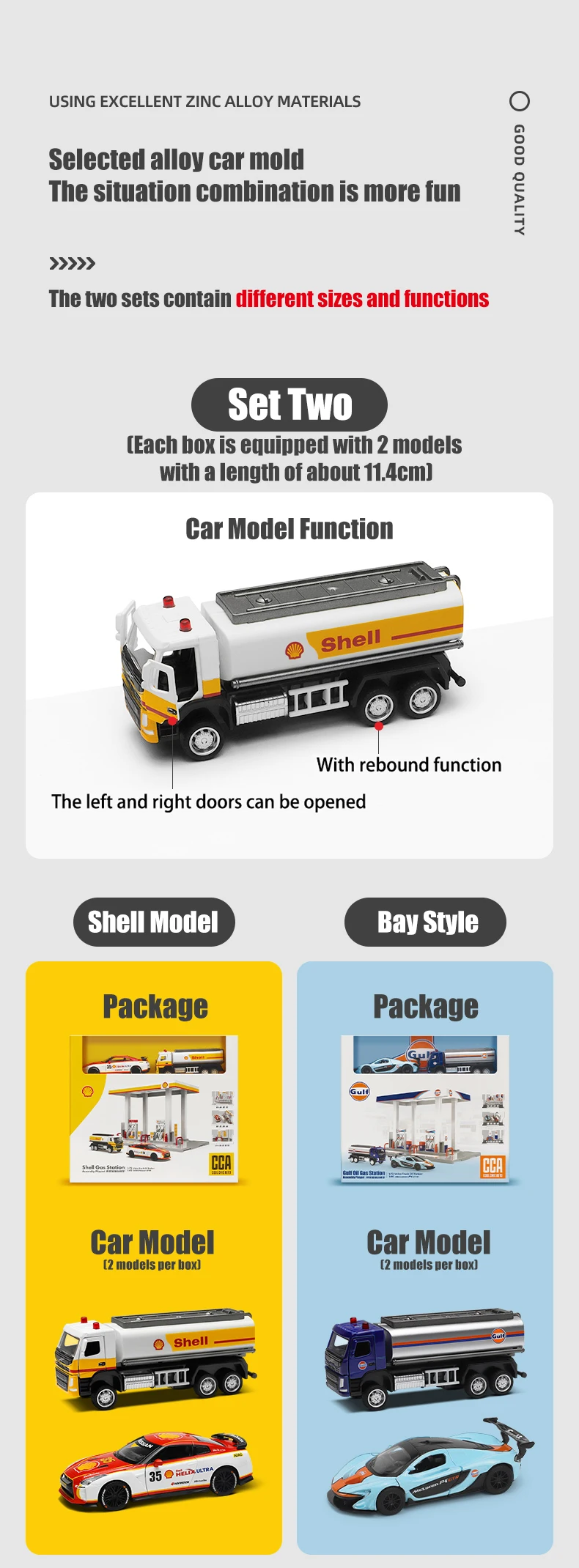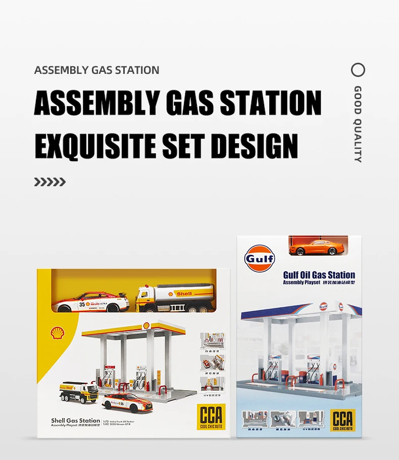 CCA, posto de gasolina Shell, posto de gasolina do Golfo, liga de metal, diecast, modelo de carro, entusiastas, coleção, enfeites, presentes de feriado