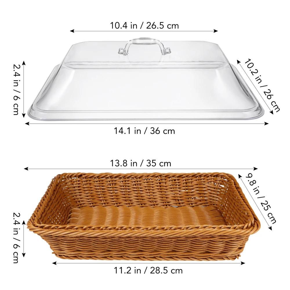 Cesta de imitação de Rattan com tampa, Simulado Pão Vegetal Servir Cestas, Recipientes De Armazenamento De Acrílico para Casa, Cozinha, Piquenique