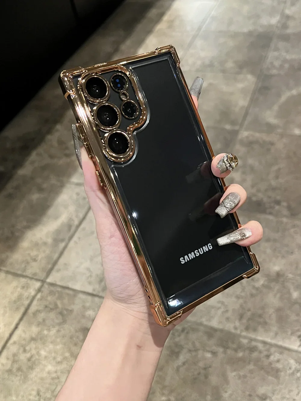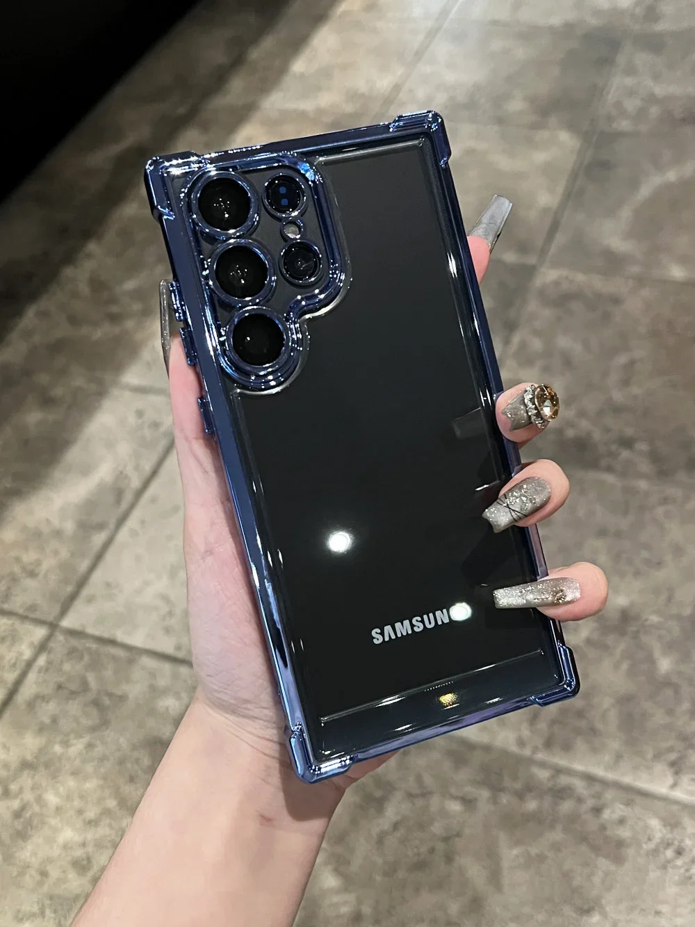Plating Armor Transparent Phone Case For Samsung S25 S24 Ultra S23 FE S22 Plus A54 A53 A55 A34 A35 A25 5G Shockproof Acrylic Cover