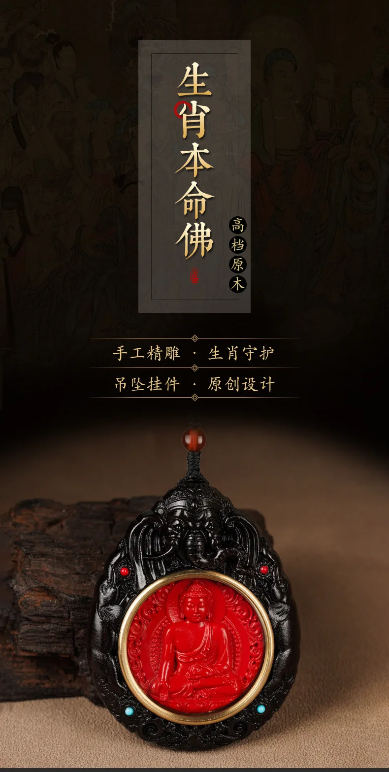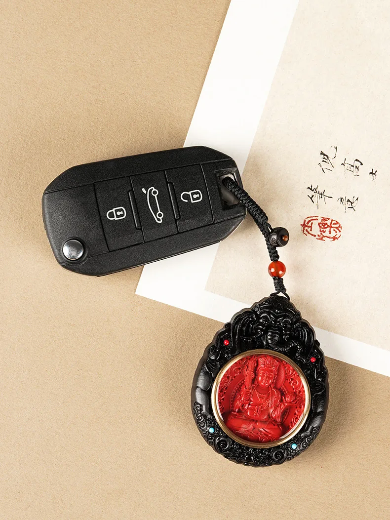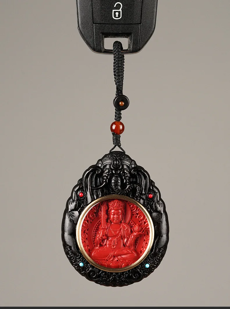 Chaveiro de carro do zodíaco cinábrio natural, pingente doze guardião do zodíaco, ébano, buda do zodíaco, samantabhadra, bodhisattva, joia, presente