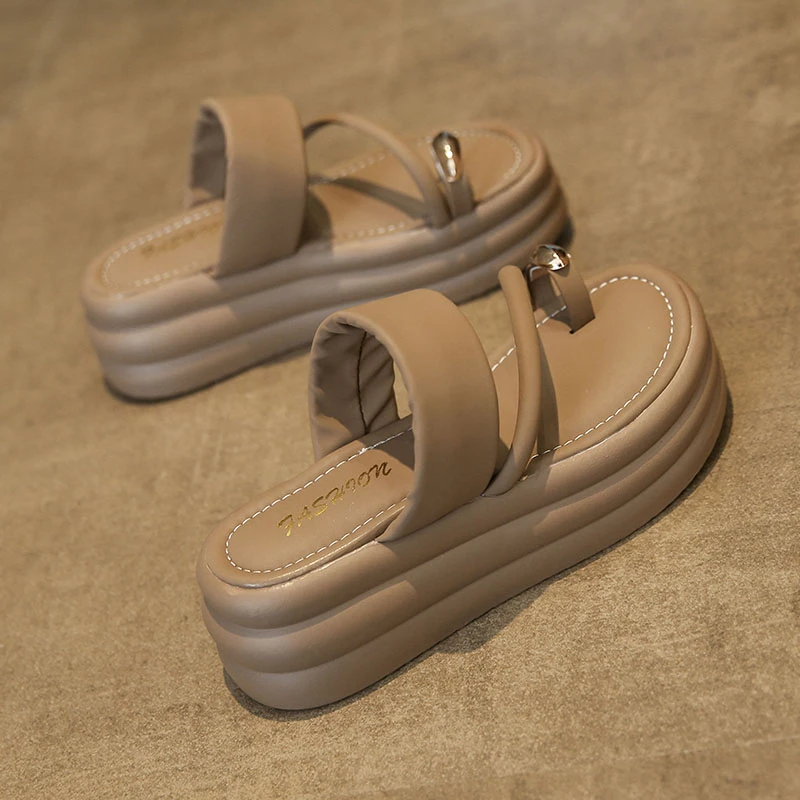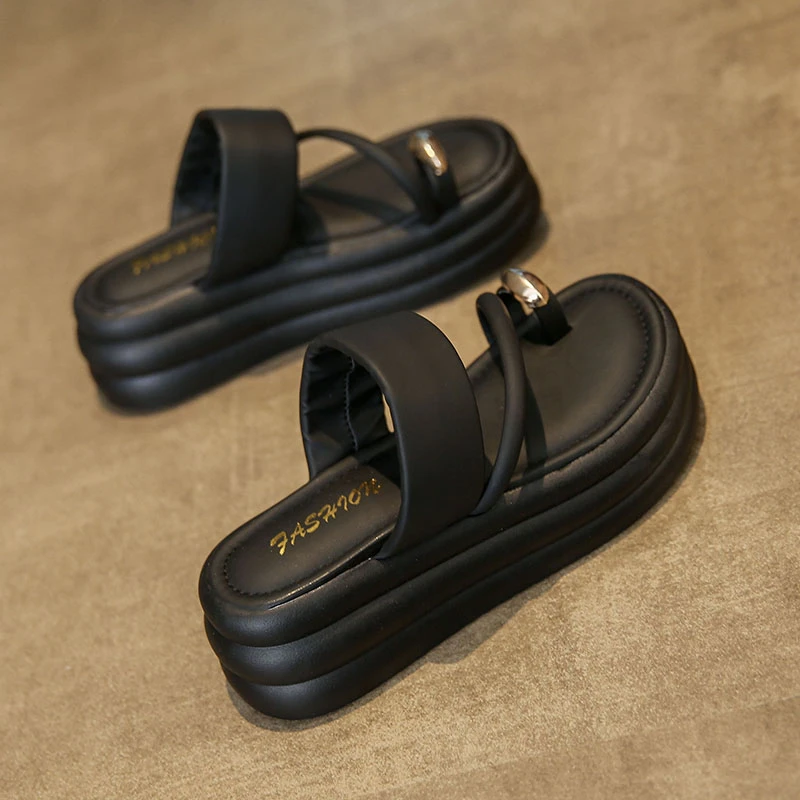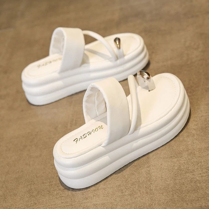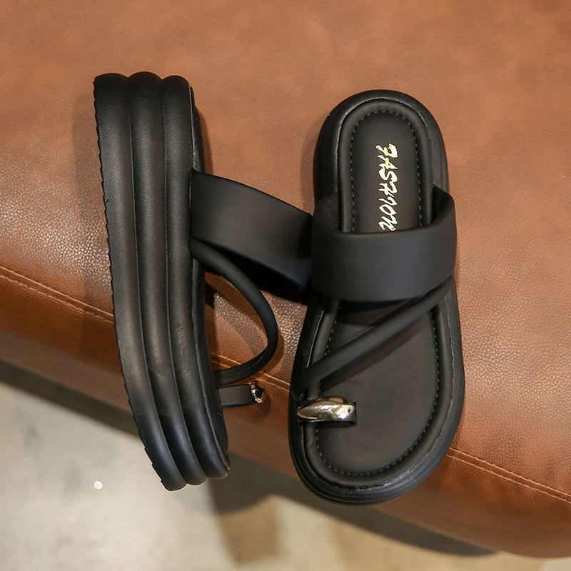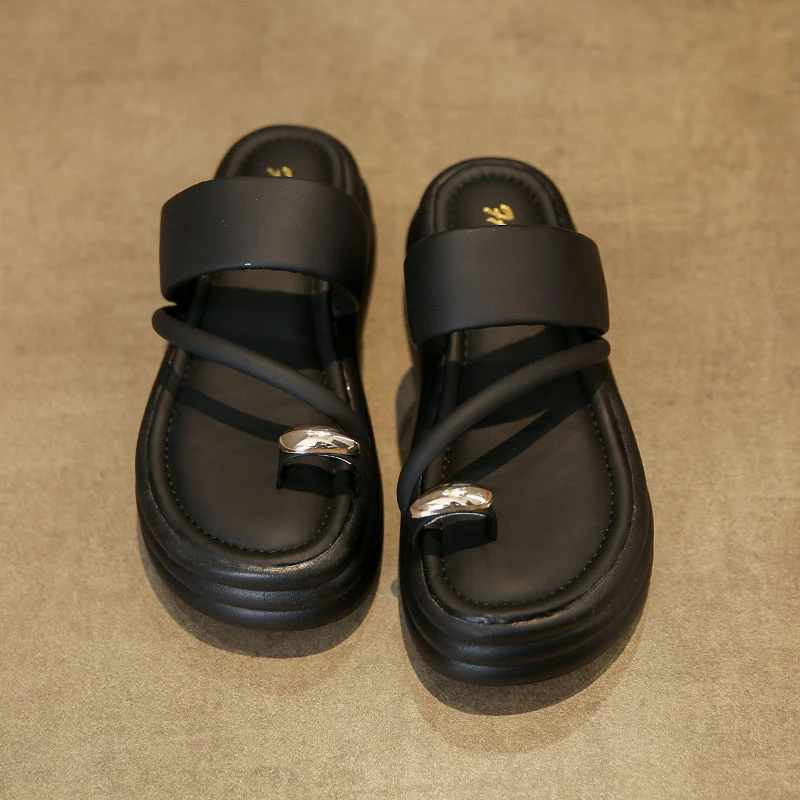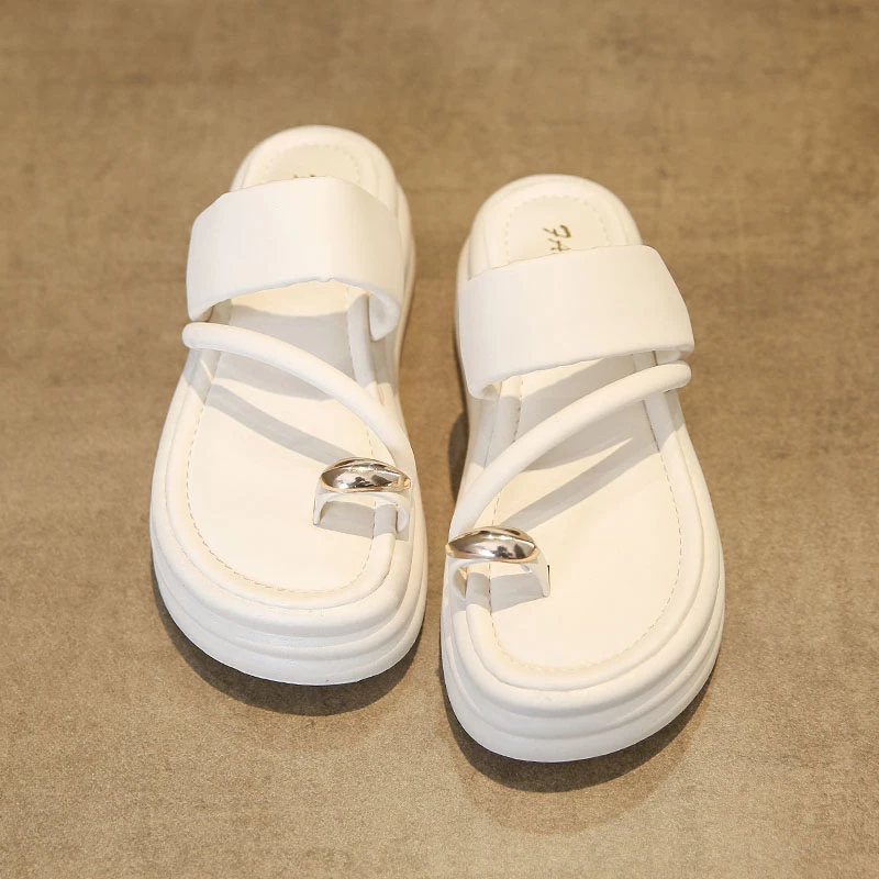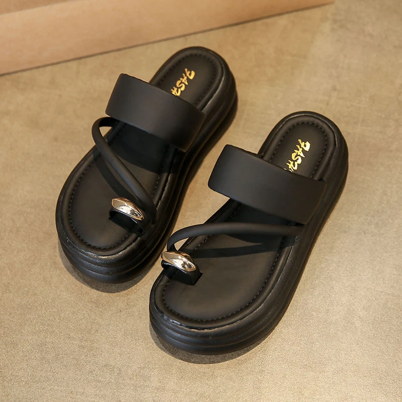 Chinelos antiderrapantes com anel de dedo do pé para mulheres, slides de plataforma, sapatos casuais para senhoras, moda verão, 2024