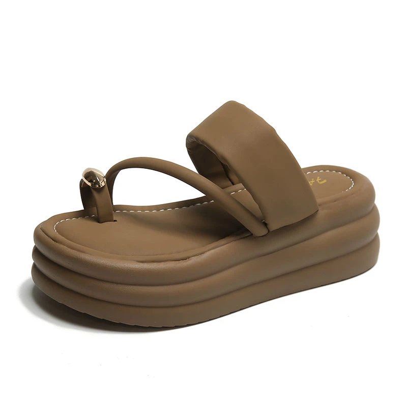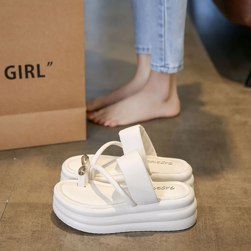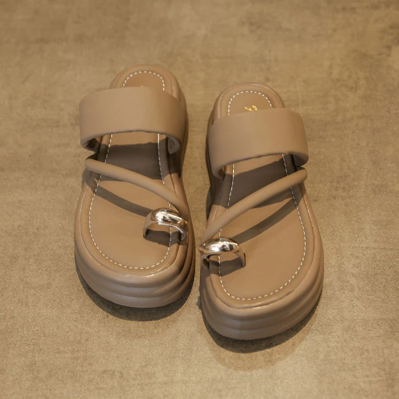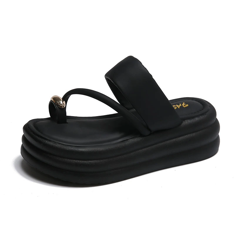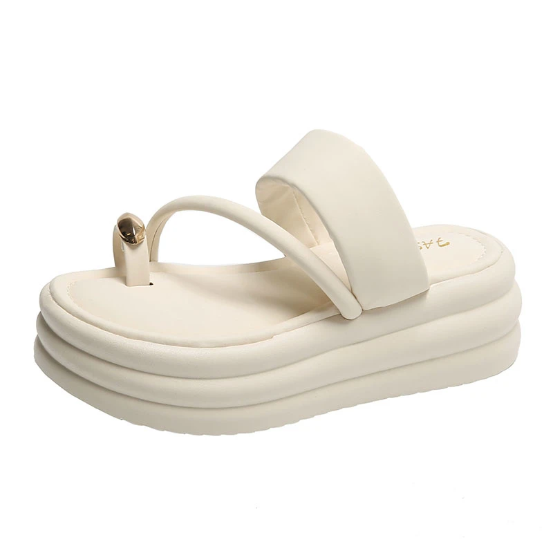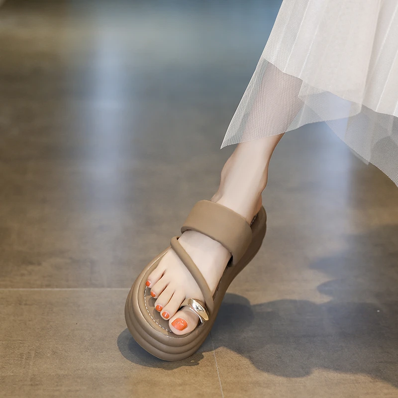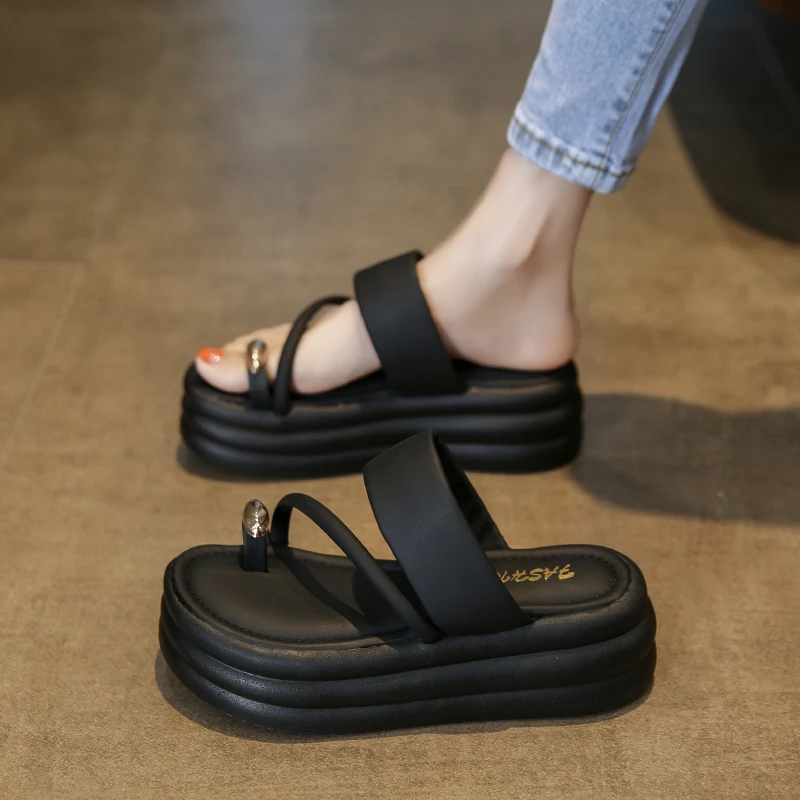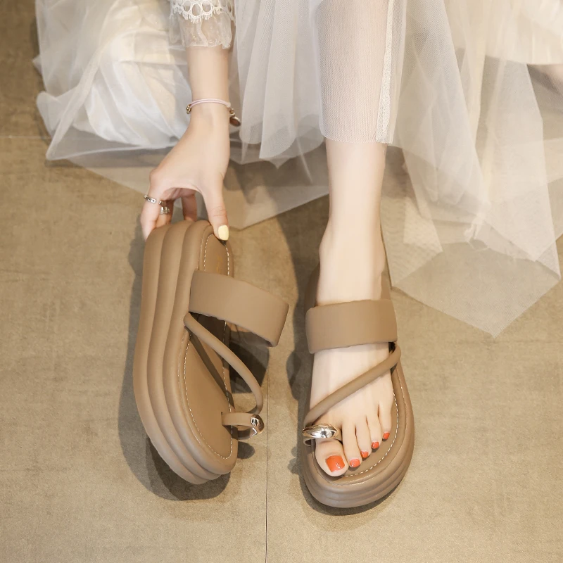 Chinelos antiderrapantes com anel de dedo do pé para mulheres, slides de plataforma, sapatos casuais para senhoras, moda verão, 2024