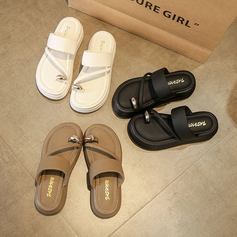 - > Chinelos antiderrapantes com anel de dedo do pé para mulheres, slides de plataforma, sapatos casuais para senhoras, moda verão, 2024