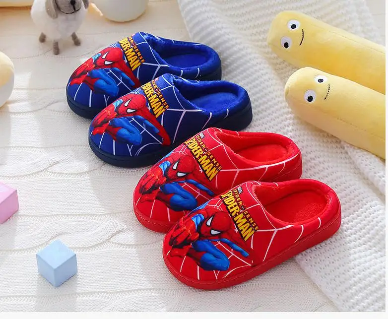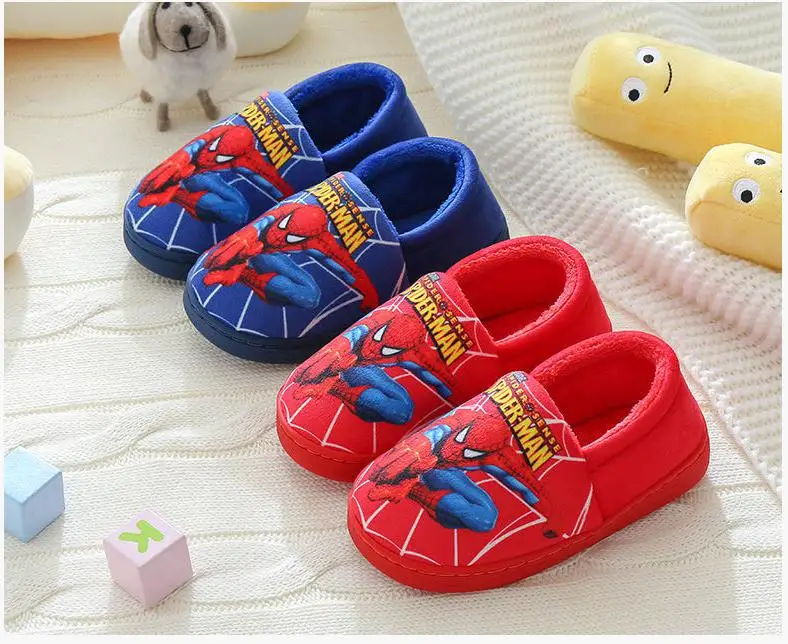- > Chinelos de algodão do homem-aranha impresso dos desenhos animados para sapatos infantis moda novo estilo calor outono inverno interior crianças meninos chinelo