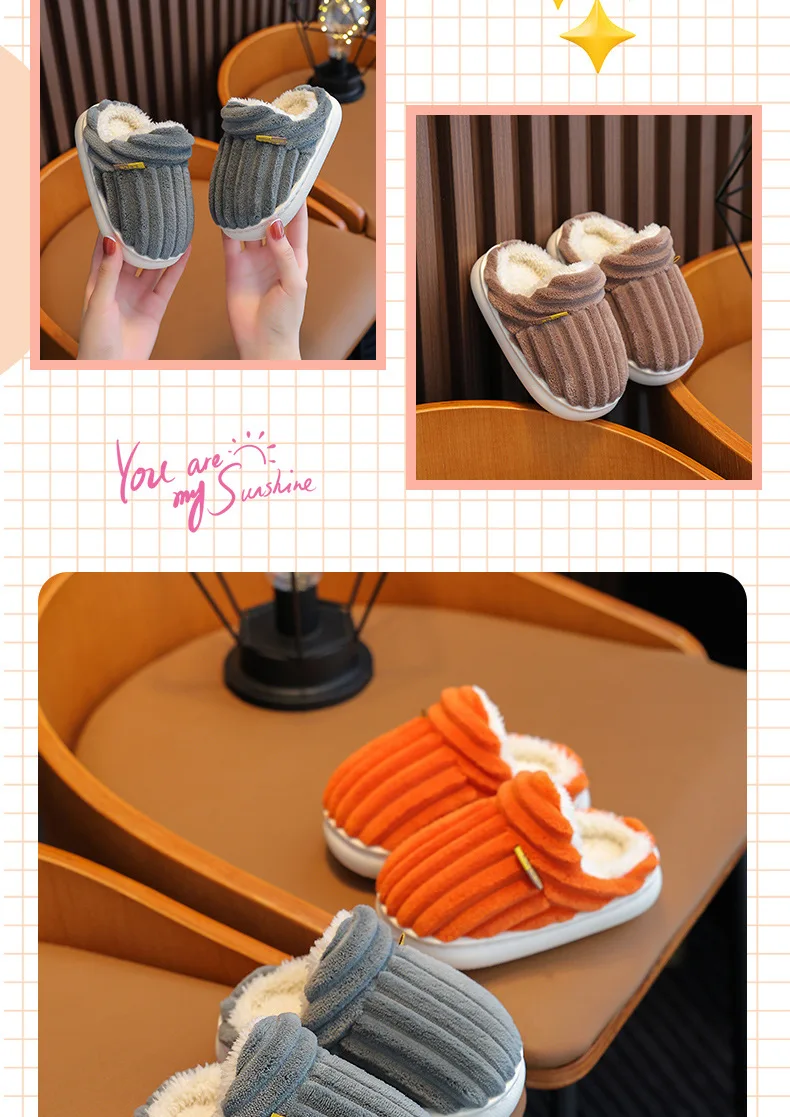 Chinelos de algodão infantis de inverno para meninos e meninas, bolsas antiderrapantes e quentes e algodão para bebês felpudos e felpudos para pais e pais