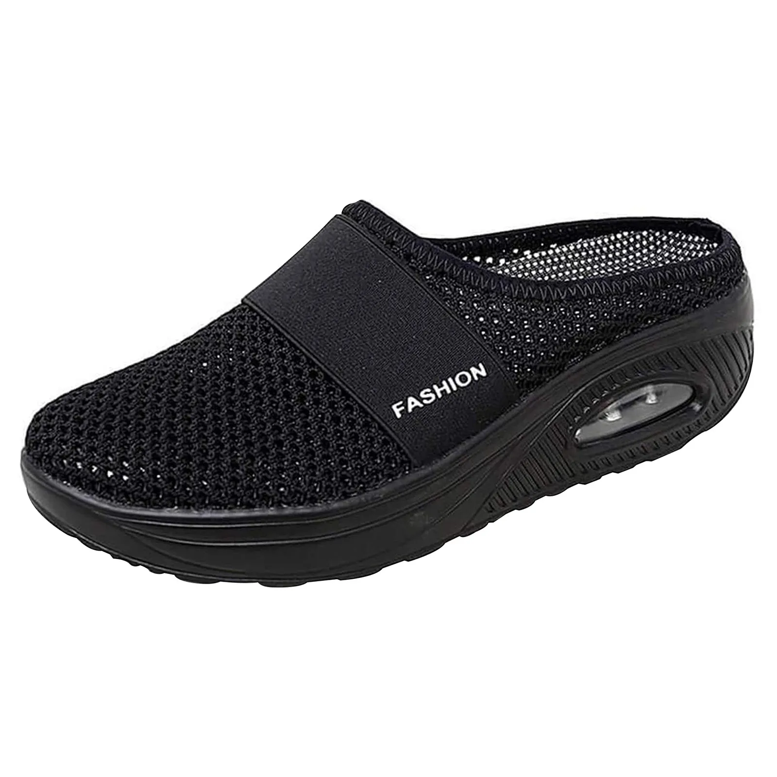 Sapatos de caminhada femininos com almofada, respiráveis com suporte de arco, sapatos casuais de malha