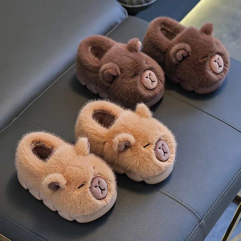 - > Chinelos infantis de algodão quente para inverno, sapatos capivara fofos para meninos e meninas, solas macias e antiderrapantes, leves e fáceis de usar