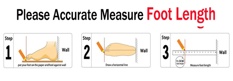 3.Se seus pés forem largos ou grossos, escolha um maior.Se você não tiver certeza do tamanho, entre em contato conosco antes do pagamento.