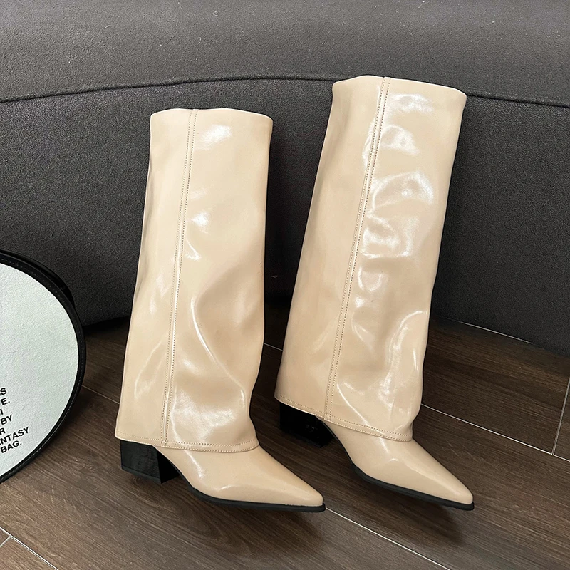 - > Chunk couro botas altas mulheres joelho alto ponteiro toe saltos sapatos mulher tendência chelsea botas novas bombas mujer neve gladiador botas