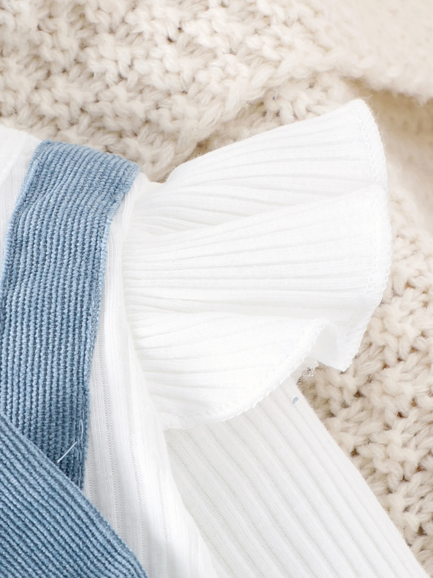 Macacão infantil de manga comprida, tecido de veludo cotelê, estampa floral, patchwork falso de duas peças, laço fofo, babados, mangas compridas, decote redondo, botões de virilha; E lindo conjunto de faixa de cabeça, simples, mas moderno, deixa seu bebê mais adorável