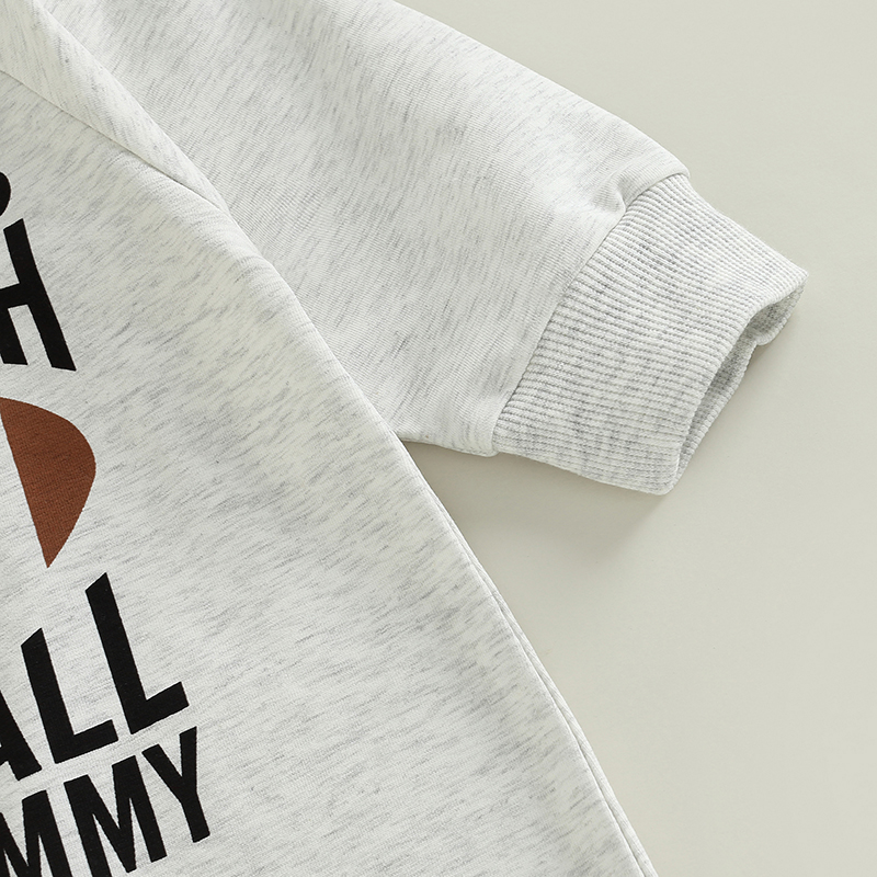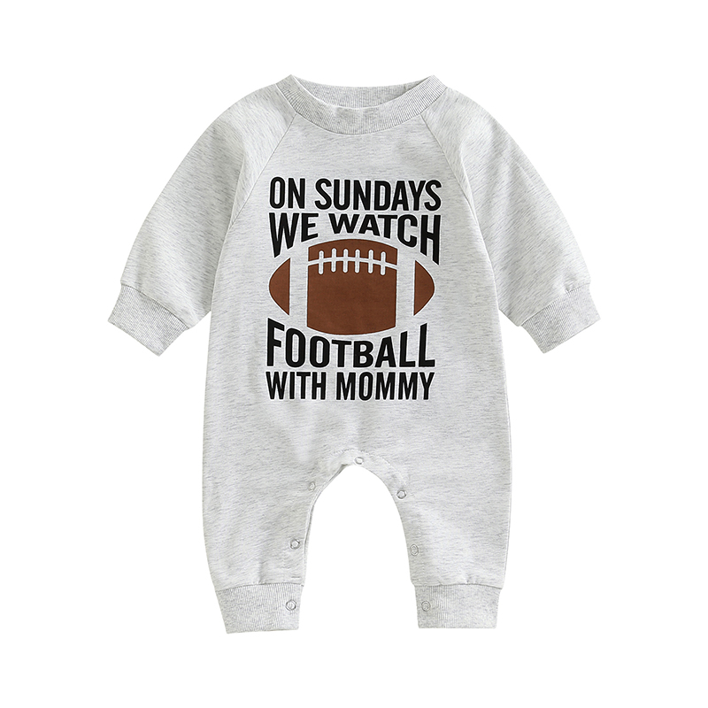 Macacão infantil da primavera do outono do bebê, carta dos desenhos animados rugby impressão manga longa em torno do pescoço macacão de comprimento total para meninos meninas