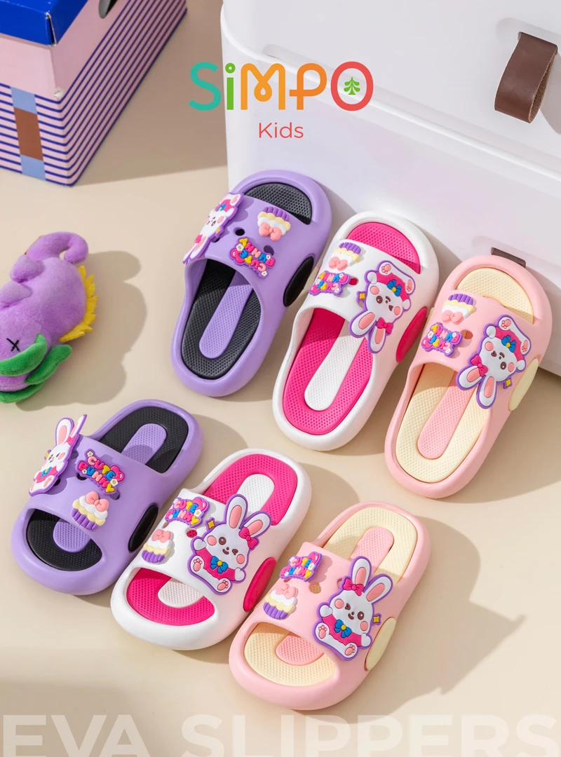 - > Coelho bonito crianças casa chinelos meninas calçados de verão sandálias de praia para crianças sola grossa macio antiderrapante casa sapatos de banheiro