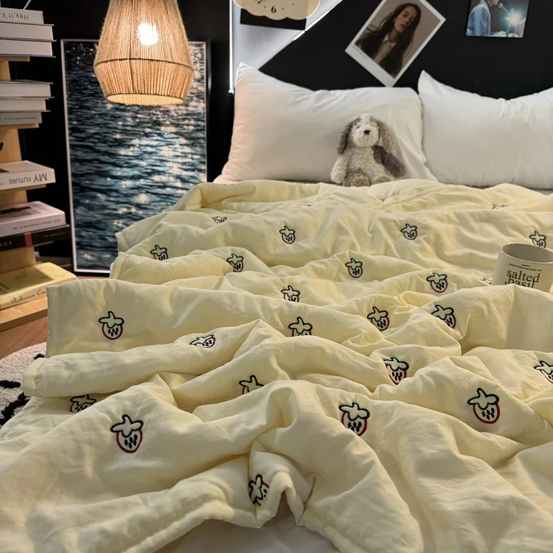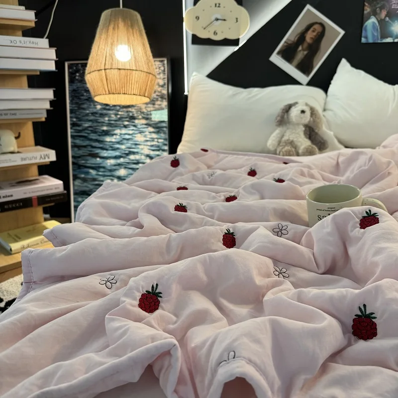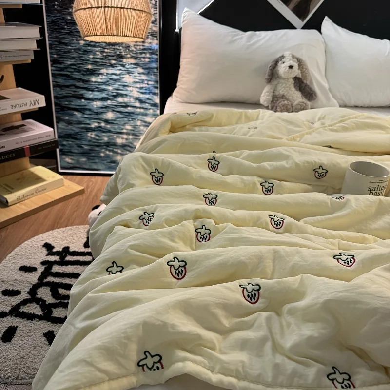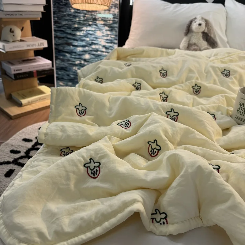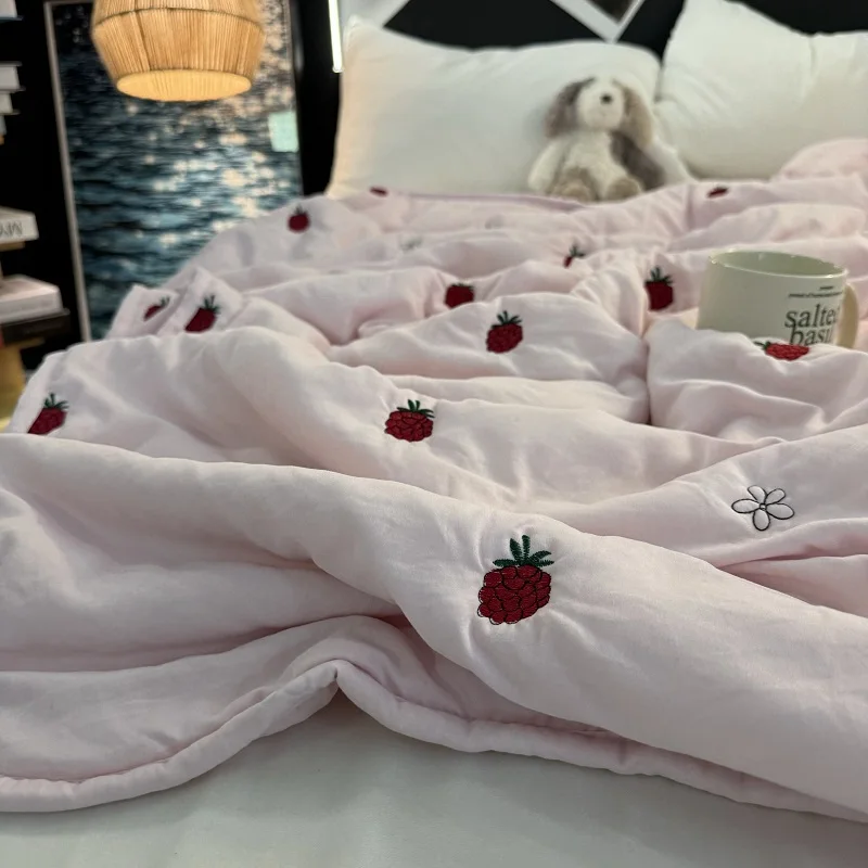 Colcha de Recheio de Morango e Soja Tamanho Solteiro/Casal Lavável à Máquina Leve Colcha para Ar Condicionado Conforto para S...