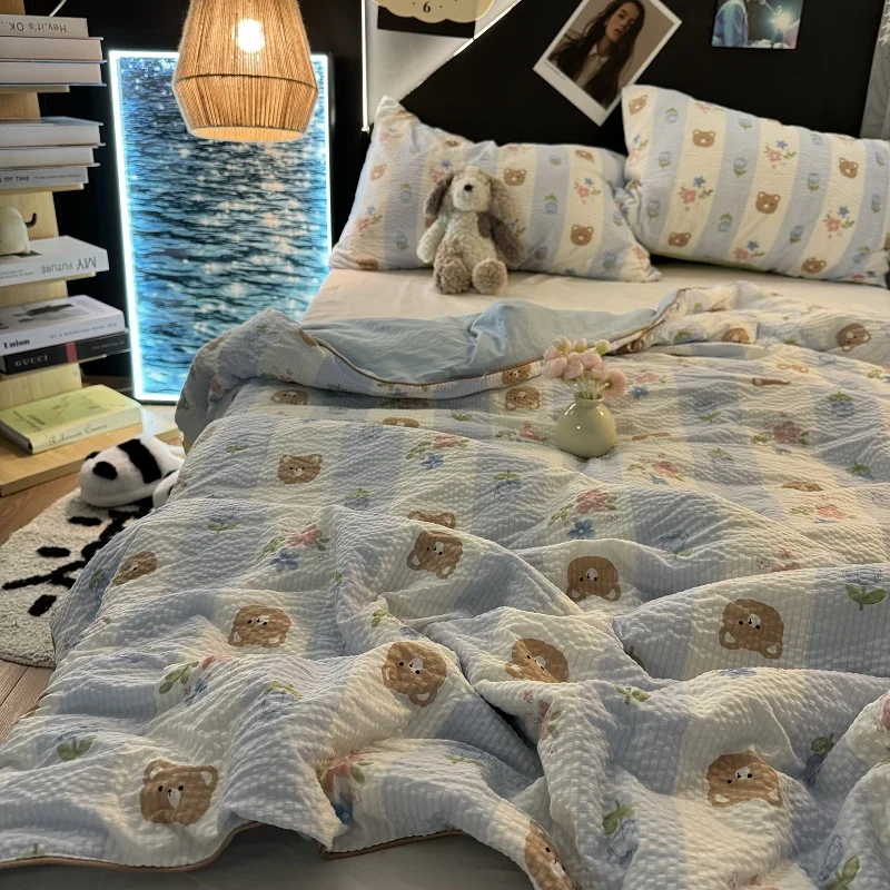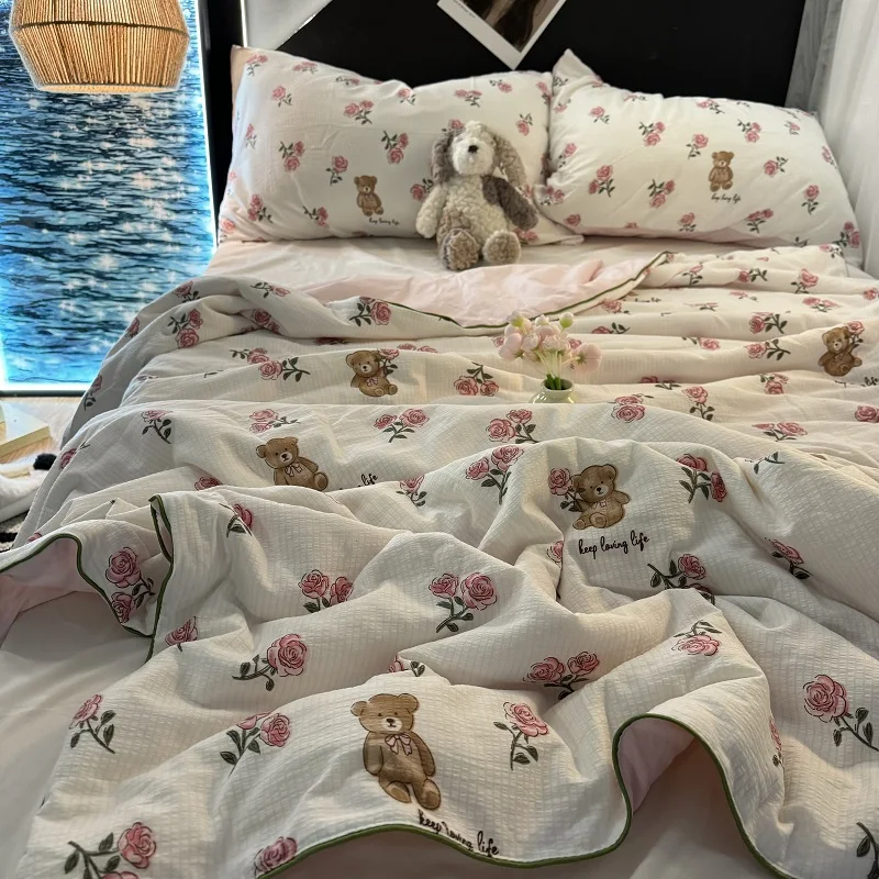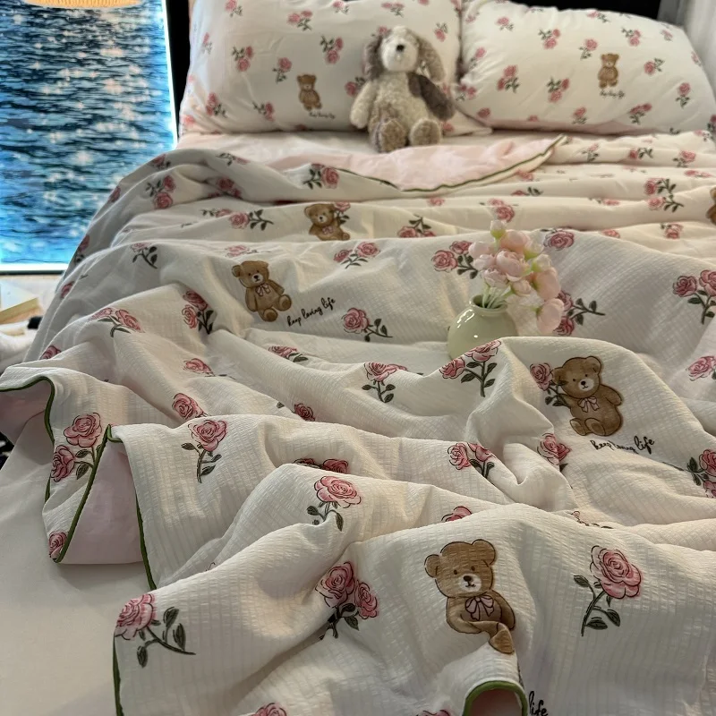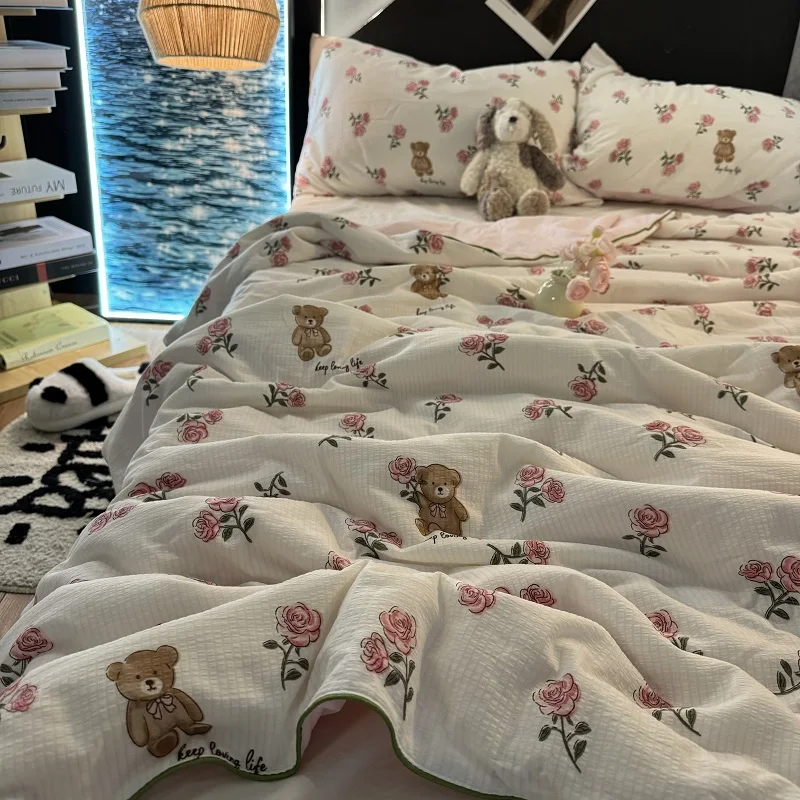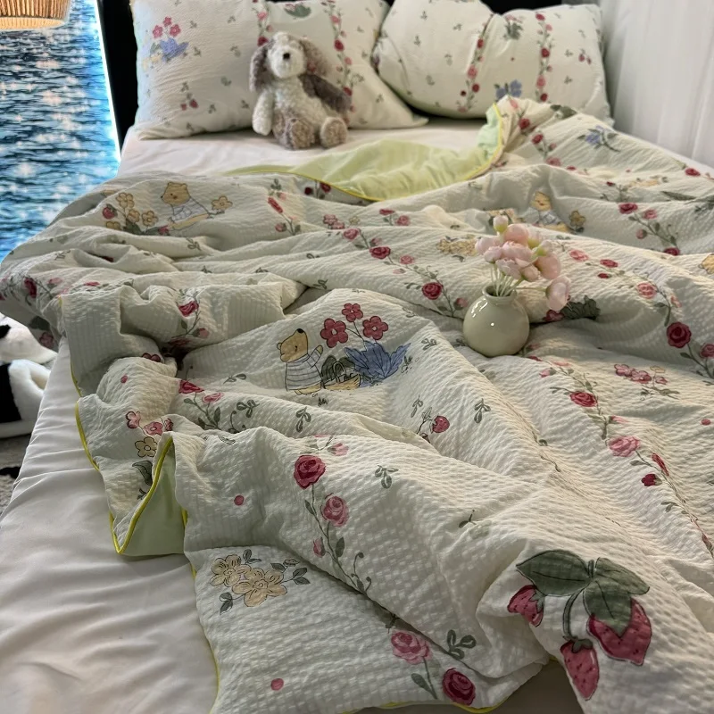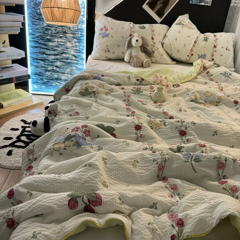 Colcha de Recheio de Morango e Soja Tamanho Solteiro/Casal Lavável à Máquina Leve Colcha para Ar Condicionado Conforto para S...
