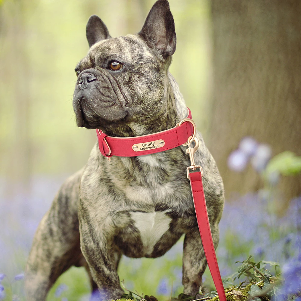 Coleira de cachorro acolchoada macia conjunto de coleira de couro pu para cães de estimação colar com corda de chumbo para caminhada ajustável para cães pequenos e médios pug