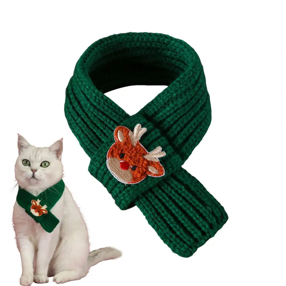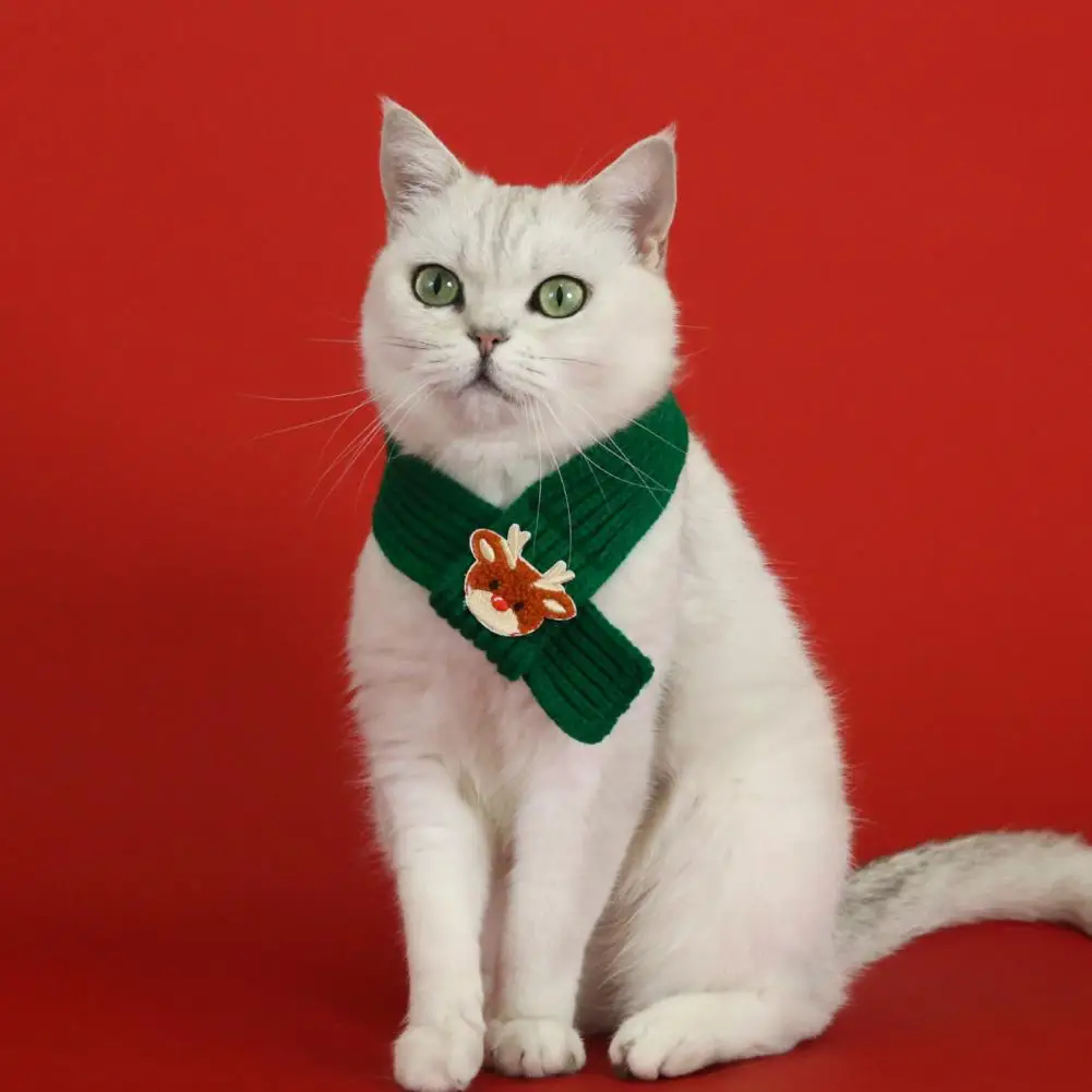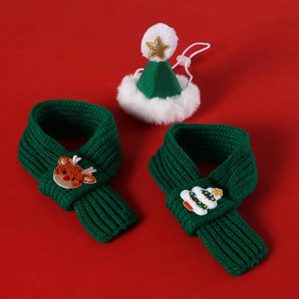 Coleira de natal para animais de estimação, bordada, festiva, árvore de natal, boneco de neve, papai noel, padrão de alce, cachecol de malha para animais de estimação, conjunto de chapéu
