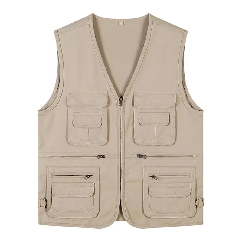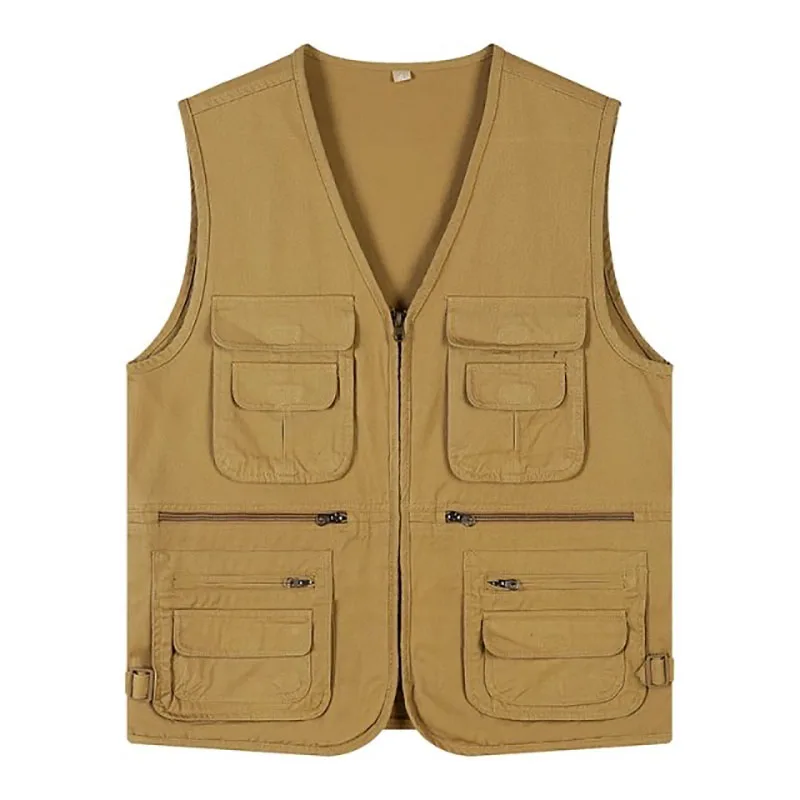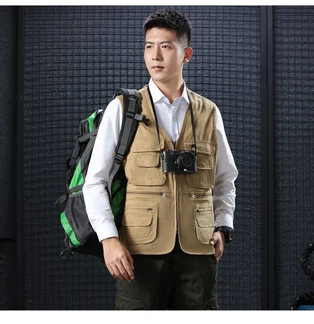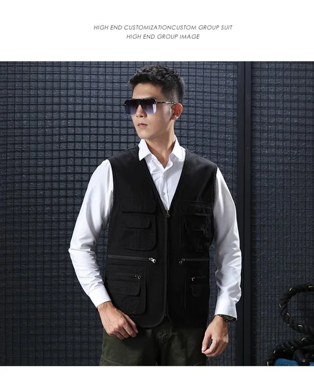 Colete de algodão sem mangas com bolsos múltiplos para homens, colete de fotografia, casual masculino para pesca, tamanho grande, muitos bolsos, novo, verão 2019, 16