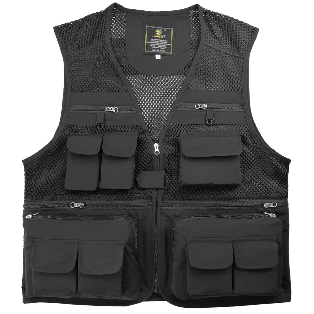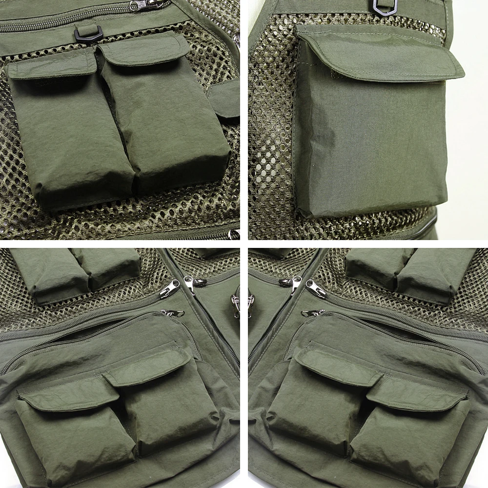 Colete de pesca respirável colete de malha de viagem de pesca com bolsos com zíper colete de trabalho de verão para atividades ao ar livre
