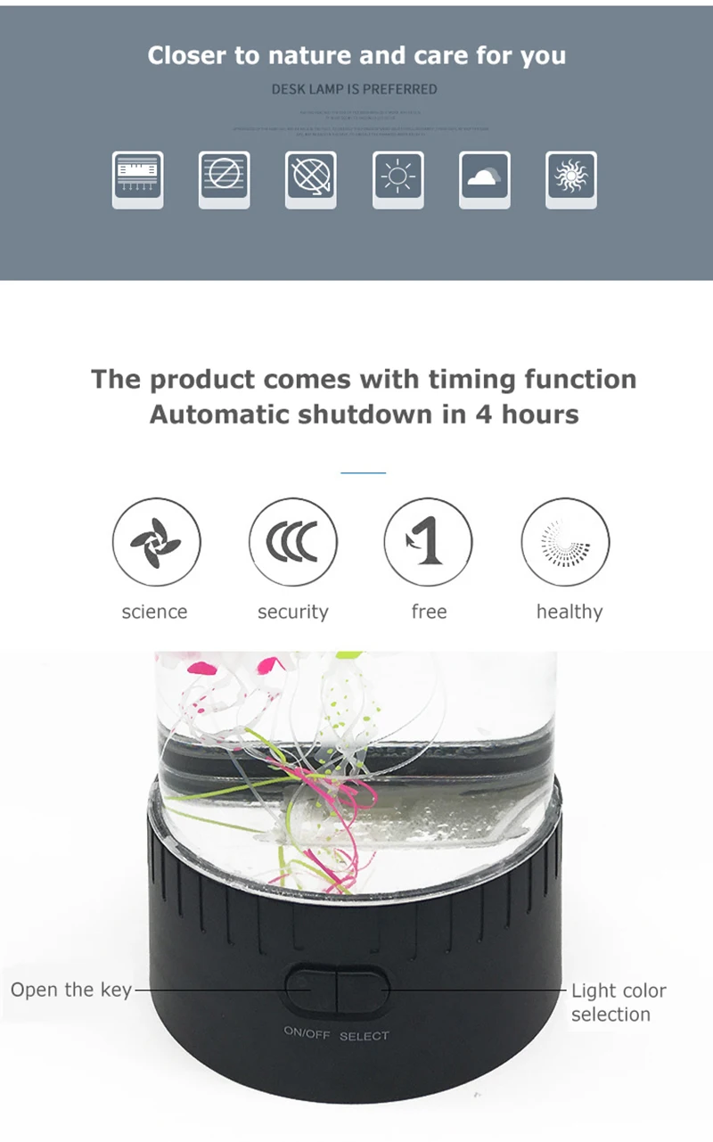 Esta lâmpada LED tabela aquário com duas águas-vivas artificiais que proporcionam uma atmosfera extravagante como medusas reais.