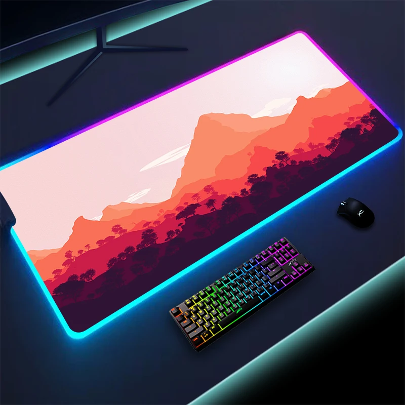 - > Colorido Luminous LED Lighting Mouse Pad, Non-Slip RGB Gaming Mousepad, Grande Desk Mat, Firewatch Forest, PC Gamer, 900x400mm, XL