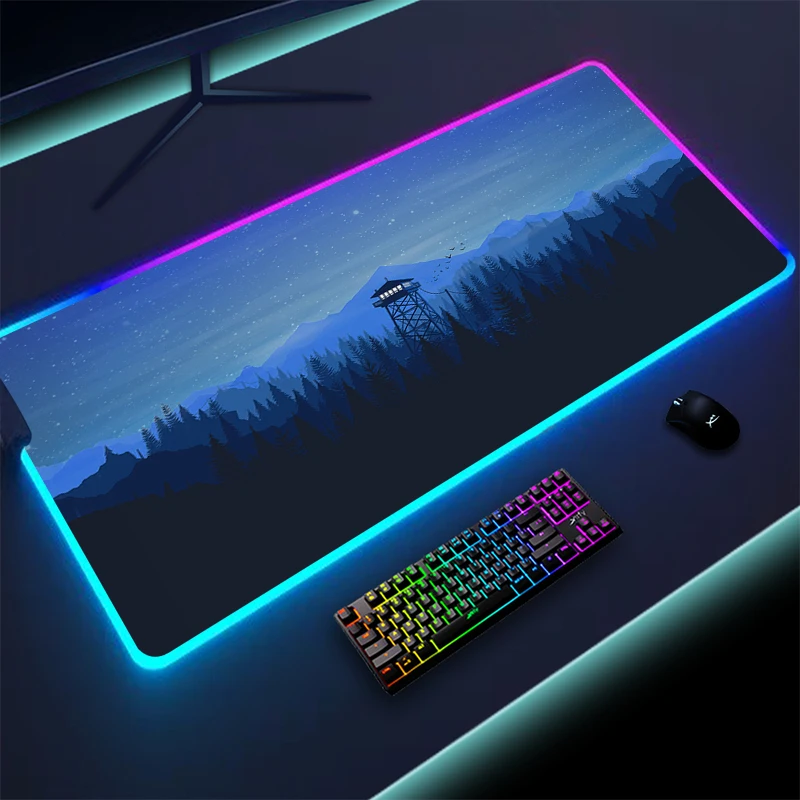 Colorido Luminoso LED Iluminação Mouse Pad Firewatch Floresta Antiderrapante RGB Mousepad Gaming Para PC Gamer 900x400mm Grande Mesa Mat XL