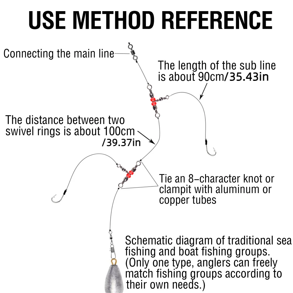 3. RIG GIRATÓRIA DE TRÊS VIAS - Linha principal para carretel, uma linha para chumbada e a outra linha para líder ou gancho.Torne sua viagem de pesca fácil e divertida