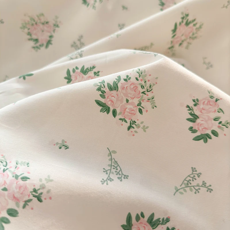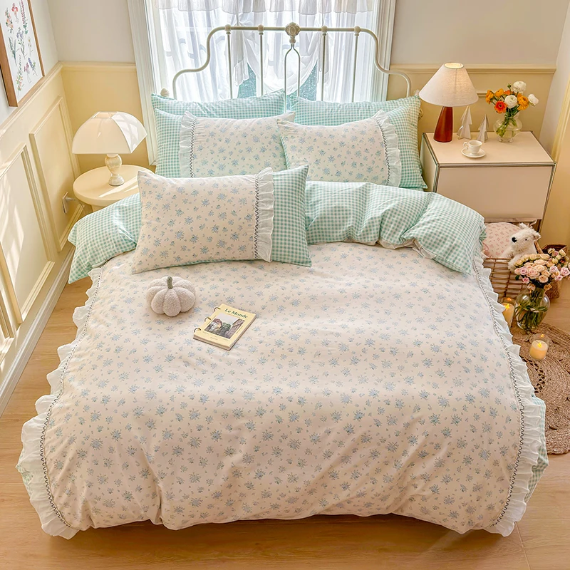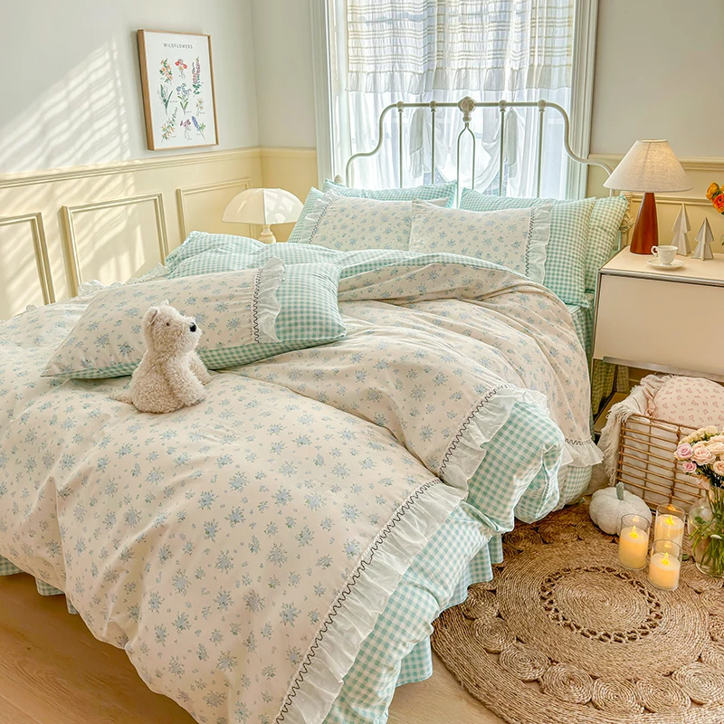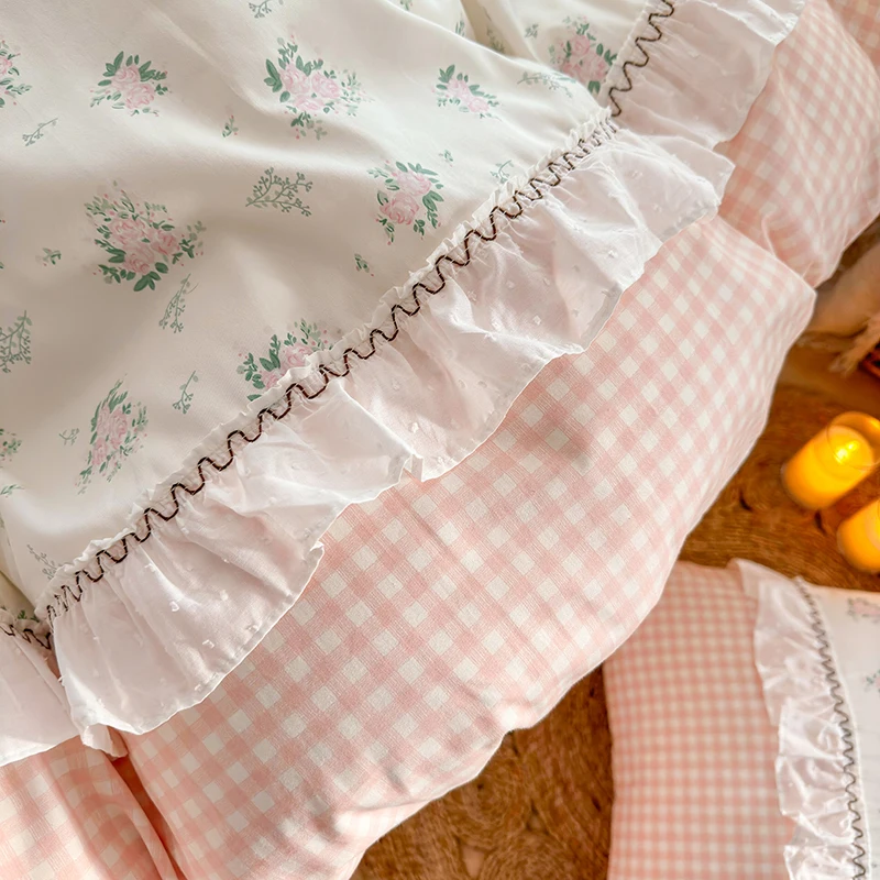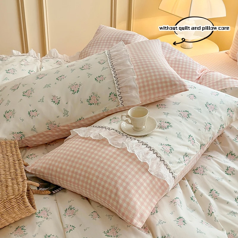 Conjunto de cama coreano para meninas, capa de edredão floral fronha de linho, lençol plano, gêmeo, solteiro, queen size, 3 peças